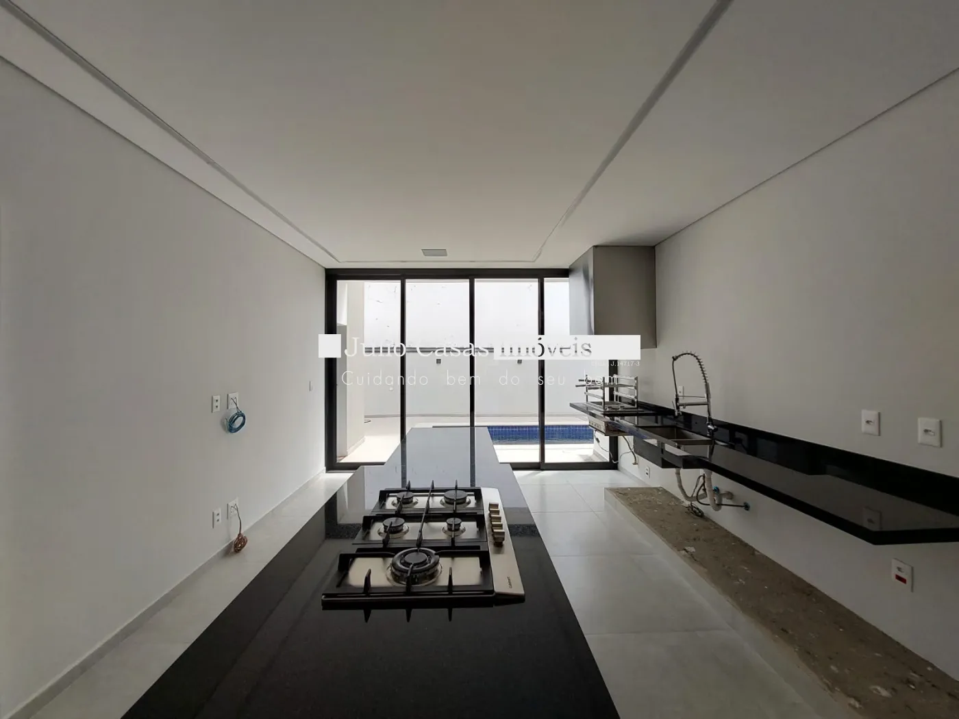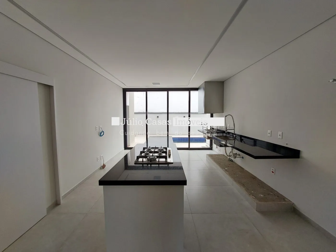 Uma escada elegante leva ao mezanino, que conta com uma ampla varanda, escritório, banheiro e sala de cinema. A cozinha se conecta ao espaço gourmet, proporcionando uma sensação de amplitude e conforto.