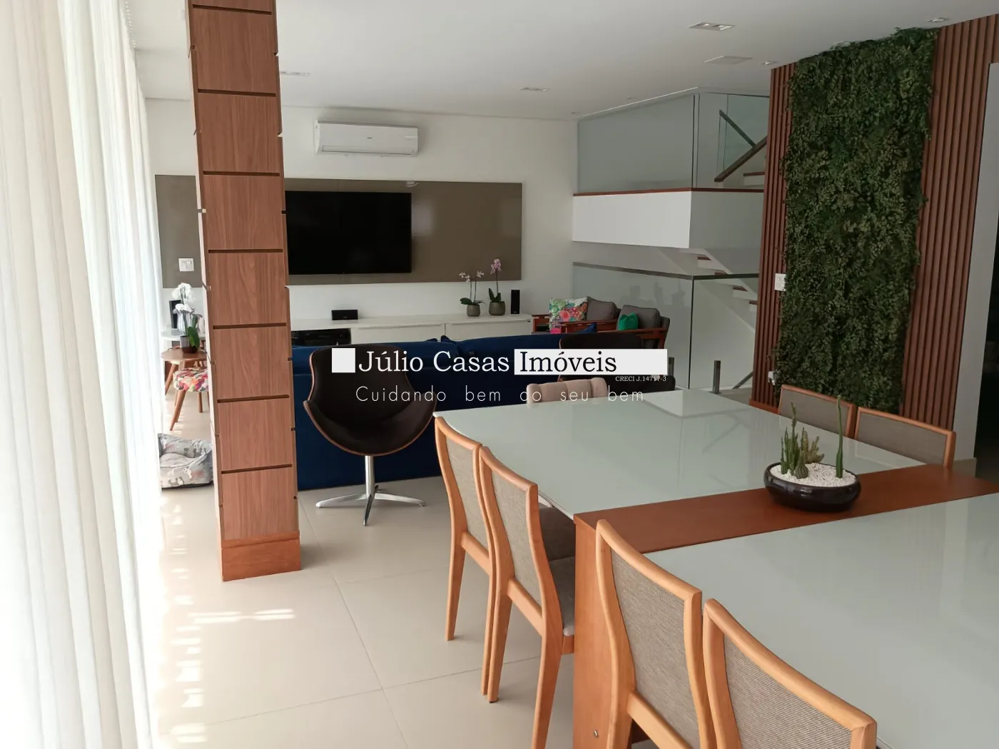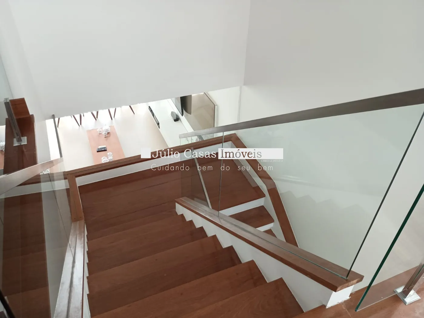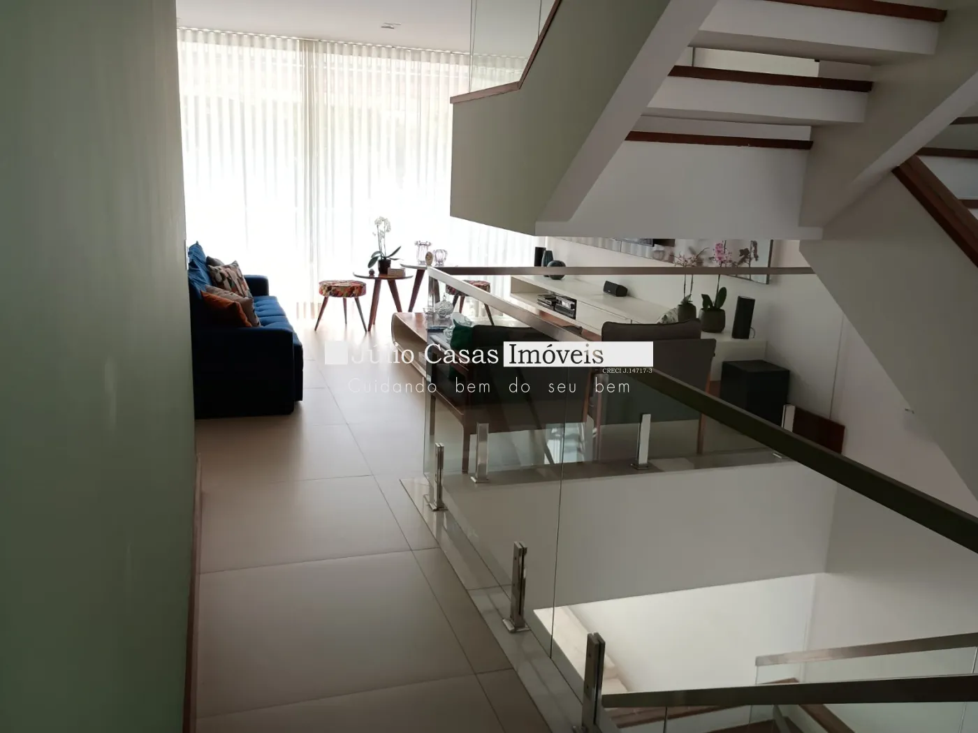 Cada detalhe reflete qualidade e requinte: piso em porcelanato de primeira linha, esquadrias de alumínio branco, portas balcão com vidro temperado e um forro de gesso elegantemente iluminado por luminárias em LED embutidas. Para garantir máximo conforto, o imóvel conta com climatização em todos os ambientes e uma imponente escada com guarda-corpo em vidro temperado e degraus em madeira de lei, um verdadeiro toque de sofisticação.