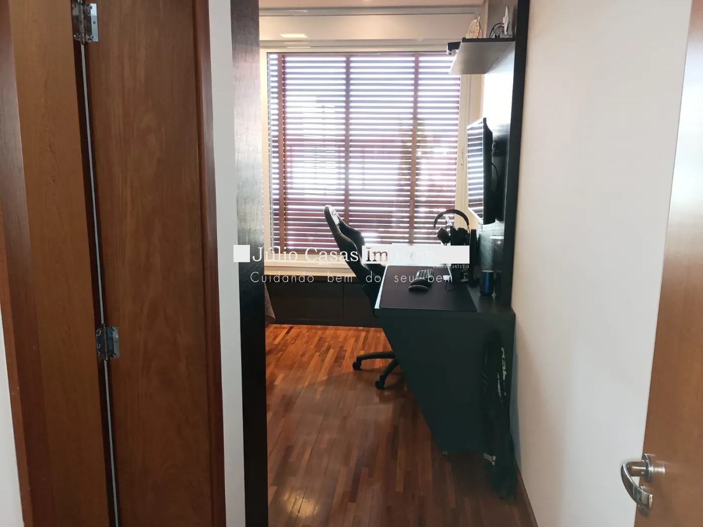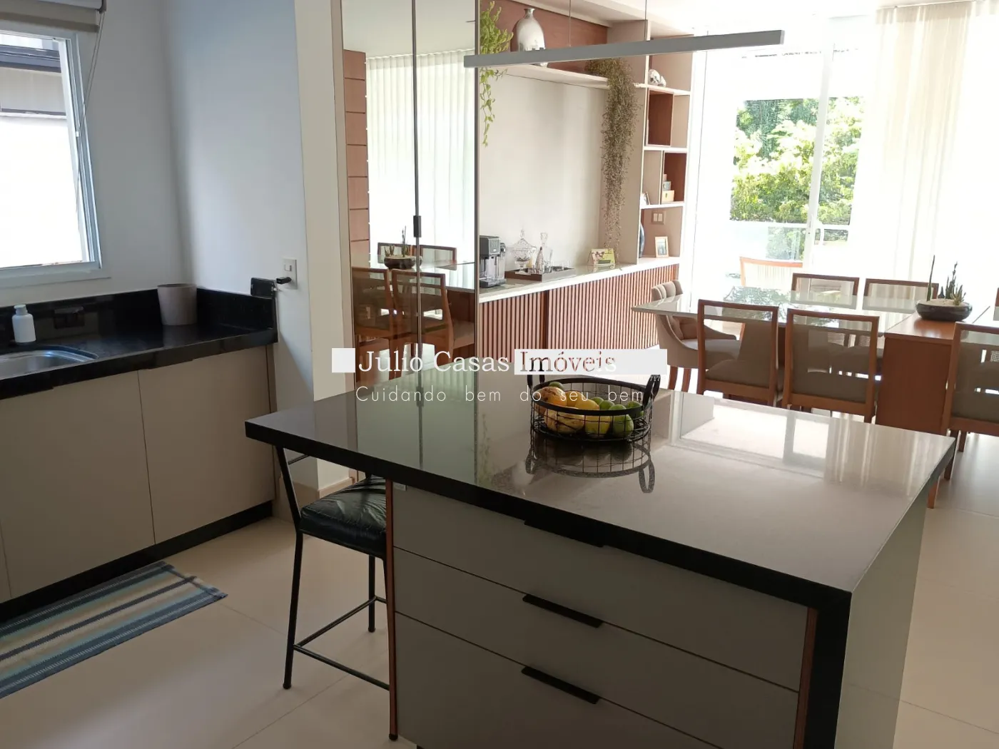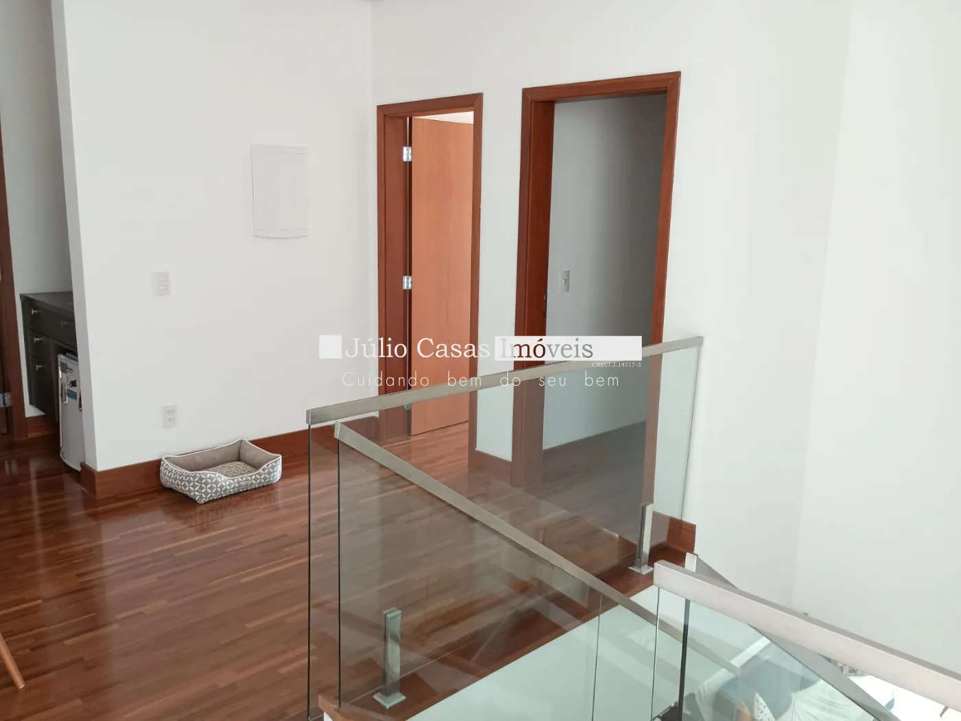 Cada detalhe reflete qualidade e requinte: piso em porcelanato de primeira linha, esquadrias de alumínio branco, portas balcão com vidro temperado e um forro de gesso elegantemente iluminado por luminárias em LED embutidas. Para garantir máximo conforto, o imóvel conta com climatização em todos os ambientes e uma imponente escada com guarda-corpo em vidro temperado e degraus em madeira de lei, um verdadeiro toque de sofisticação.