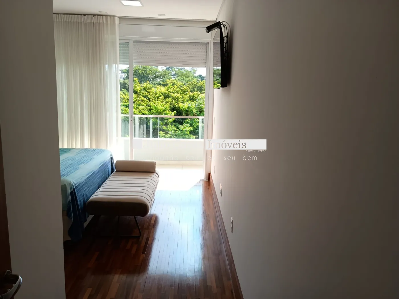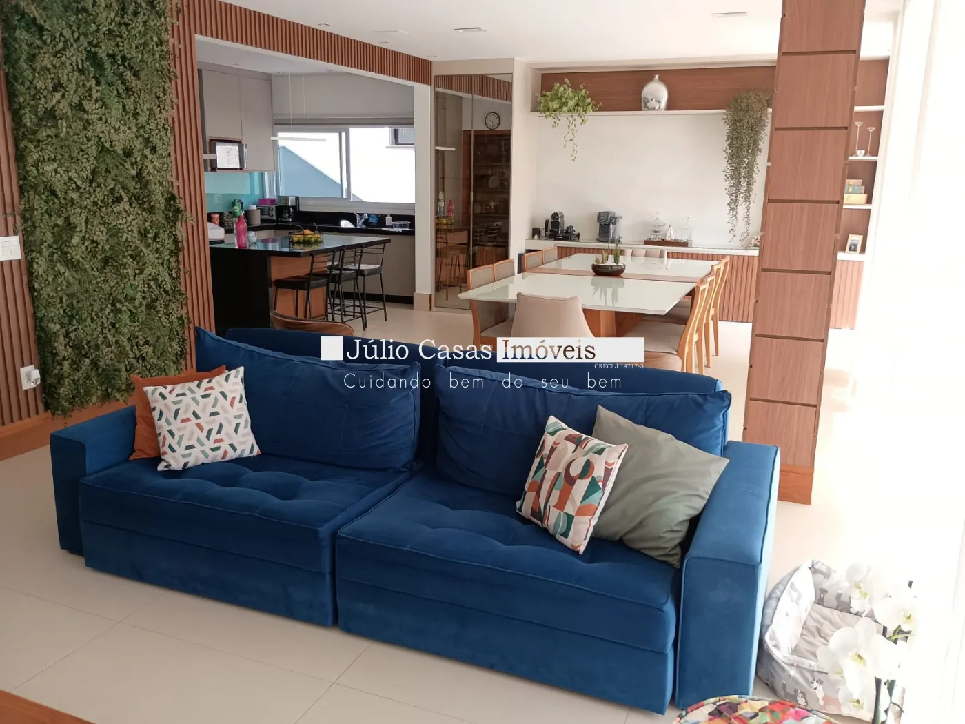 Os espaços foram cuidadosamente planejados para criar uma experiência fluida e acolhedora. A ampla sala de estar conecta-se harmoniosamente à sala de jantar e à cozinha americana, formando um ambiente sofisticado e funcional. A lavanderia anexa agrega praticidade ao dia a dia, enquanto a sacada revela uma vista exuberante para uma Área de Preservação Permanente (APP), proporcionando momentos de contemplação.