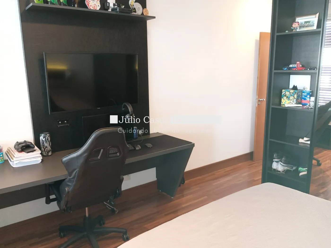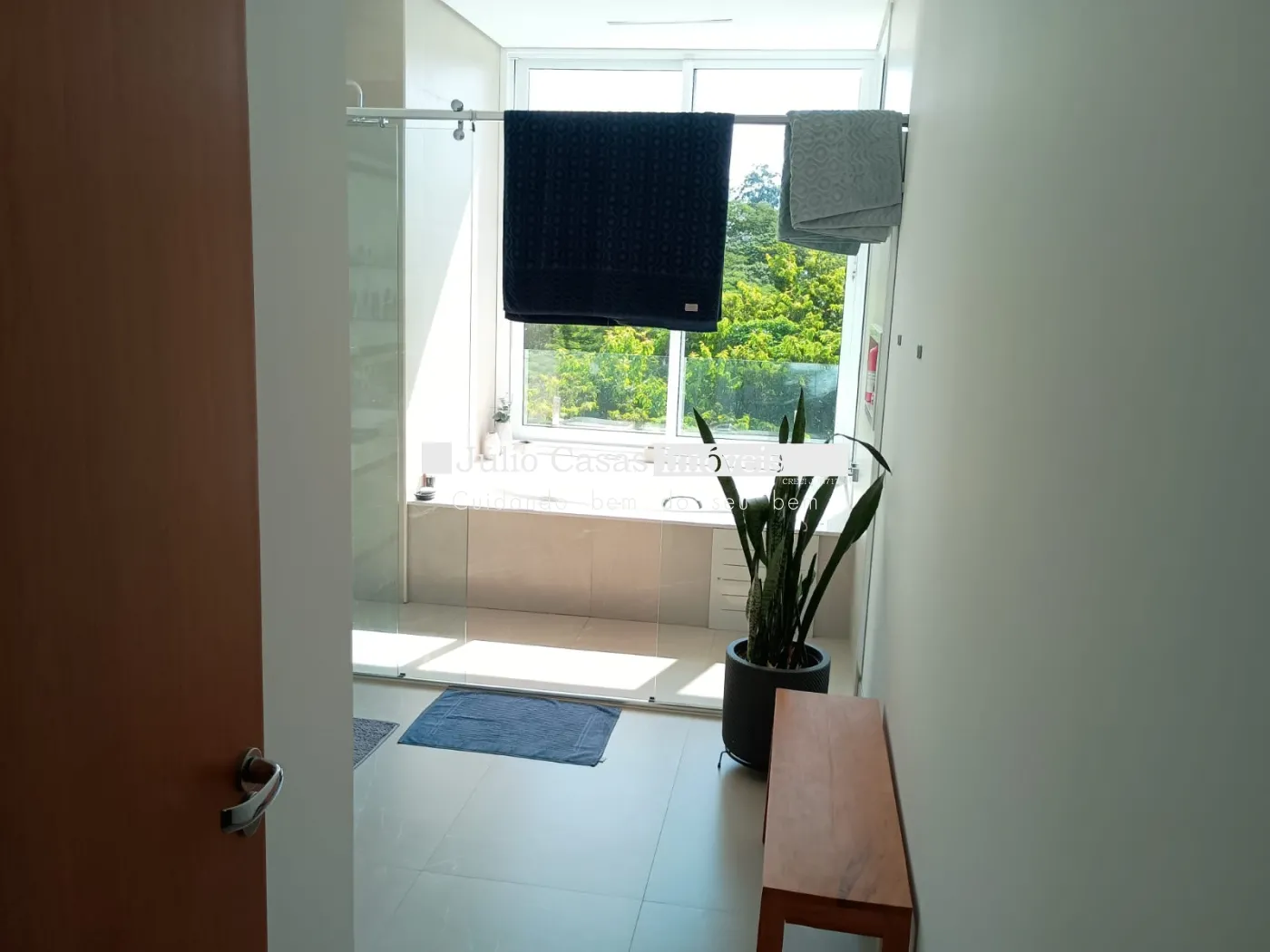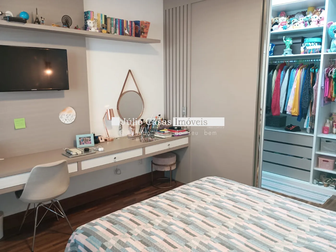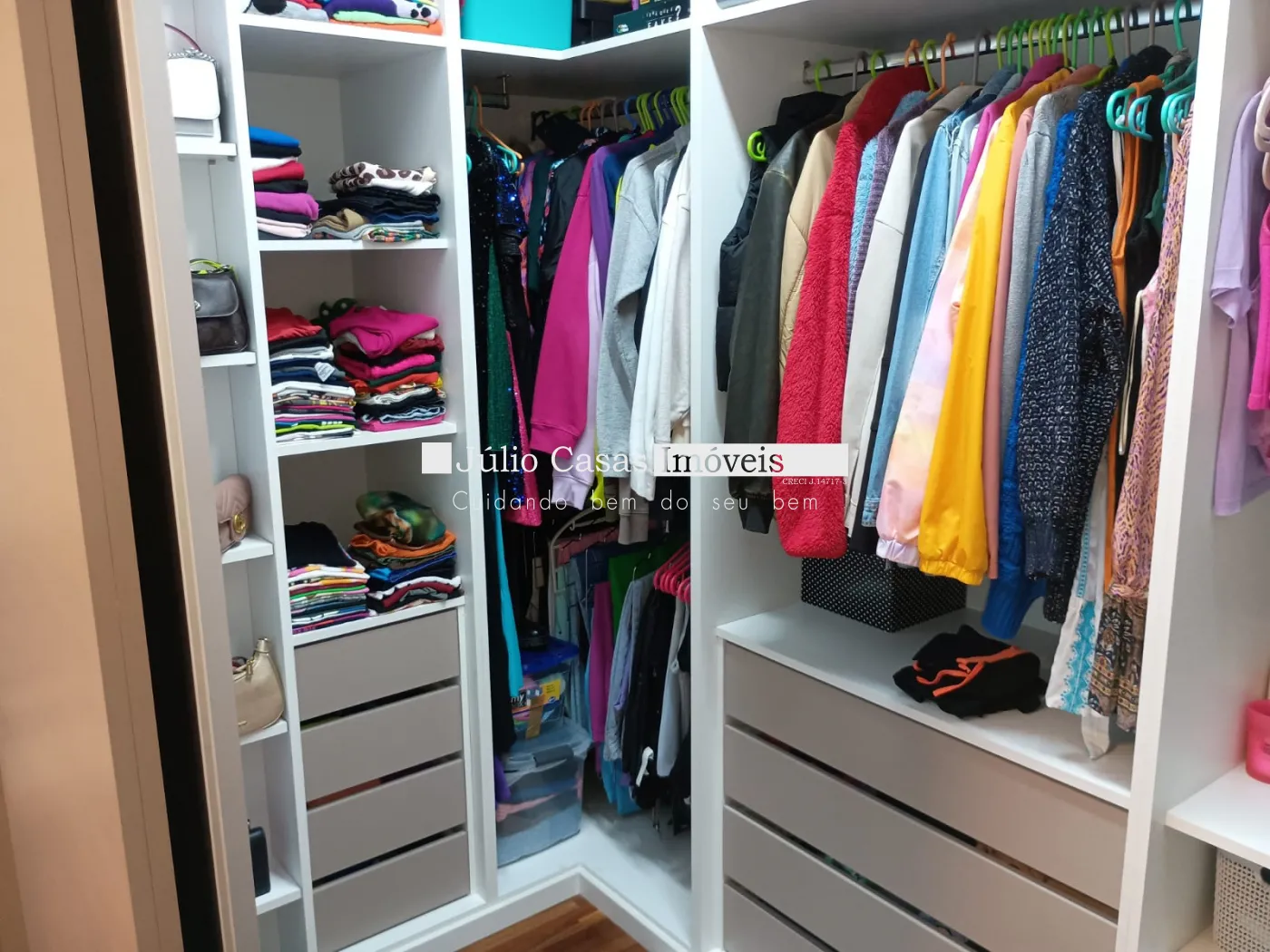 A suíte master, um verdadeiro refúgio particular, impressiona com seu amplo closet e uma luxuosa banheira de hidromassagem, garantindo momentos de relaxamento e exclusividade.