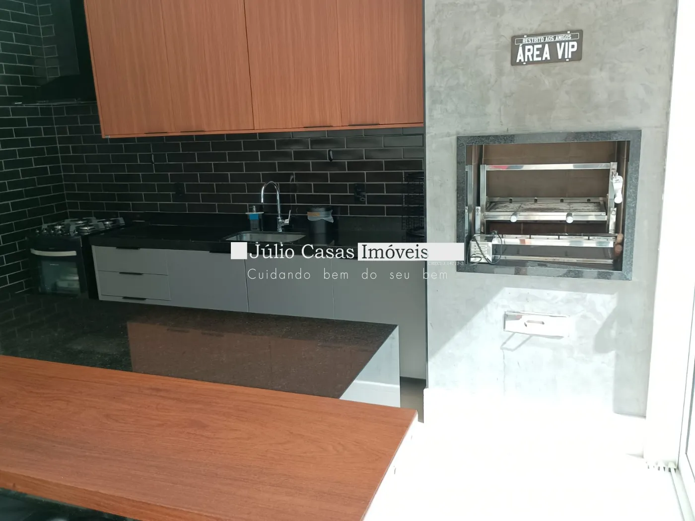 No andar inferior, a área gourmet redefine o conceito de entretenimento e conforto. Composta por uma sala de estar integrada, uma churrasqueira de alto padrão e um sofisticado balcão em granito preto, o espaço é ideal para momentos inesquecíveis ao lado de familiares e amigos.