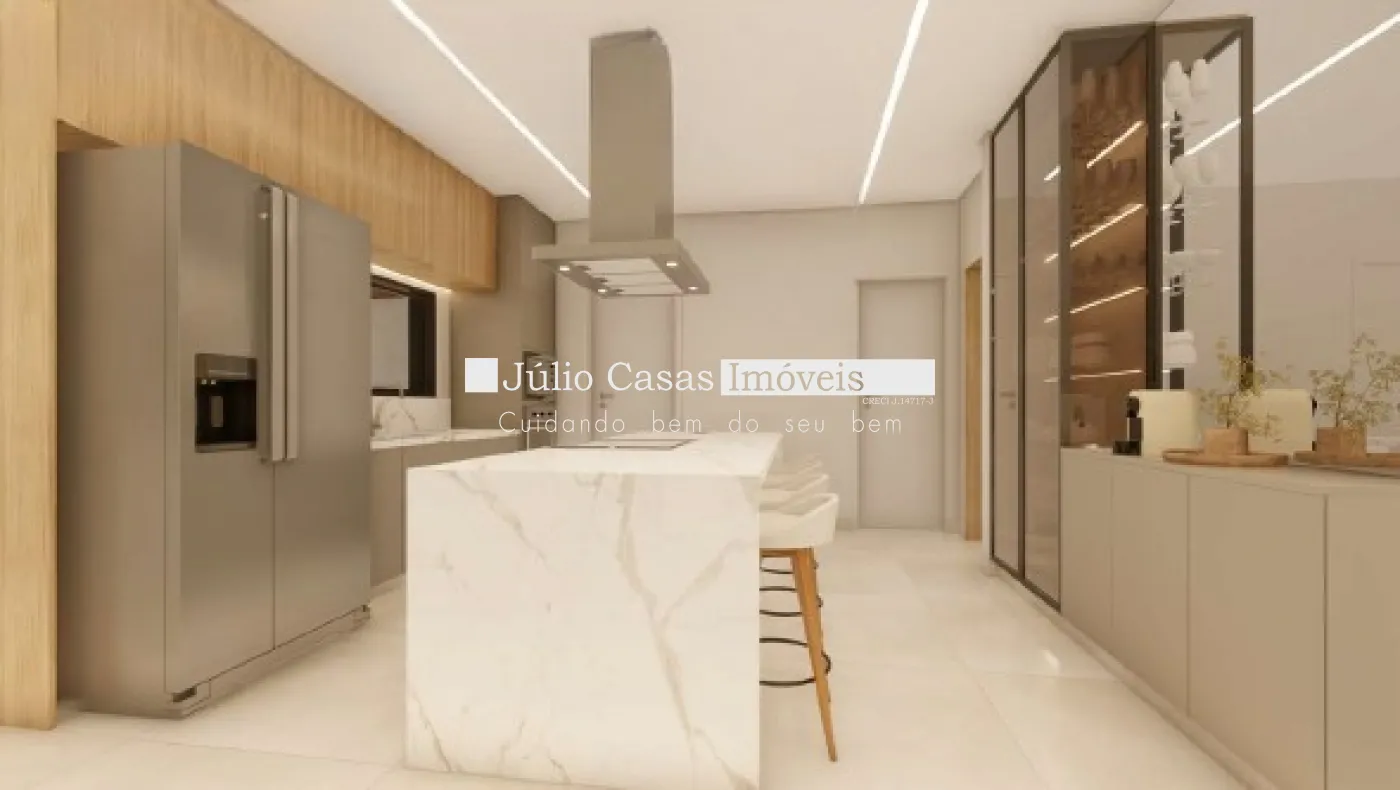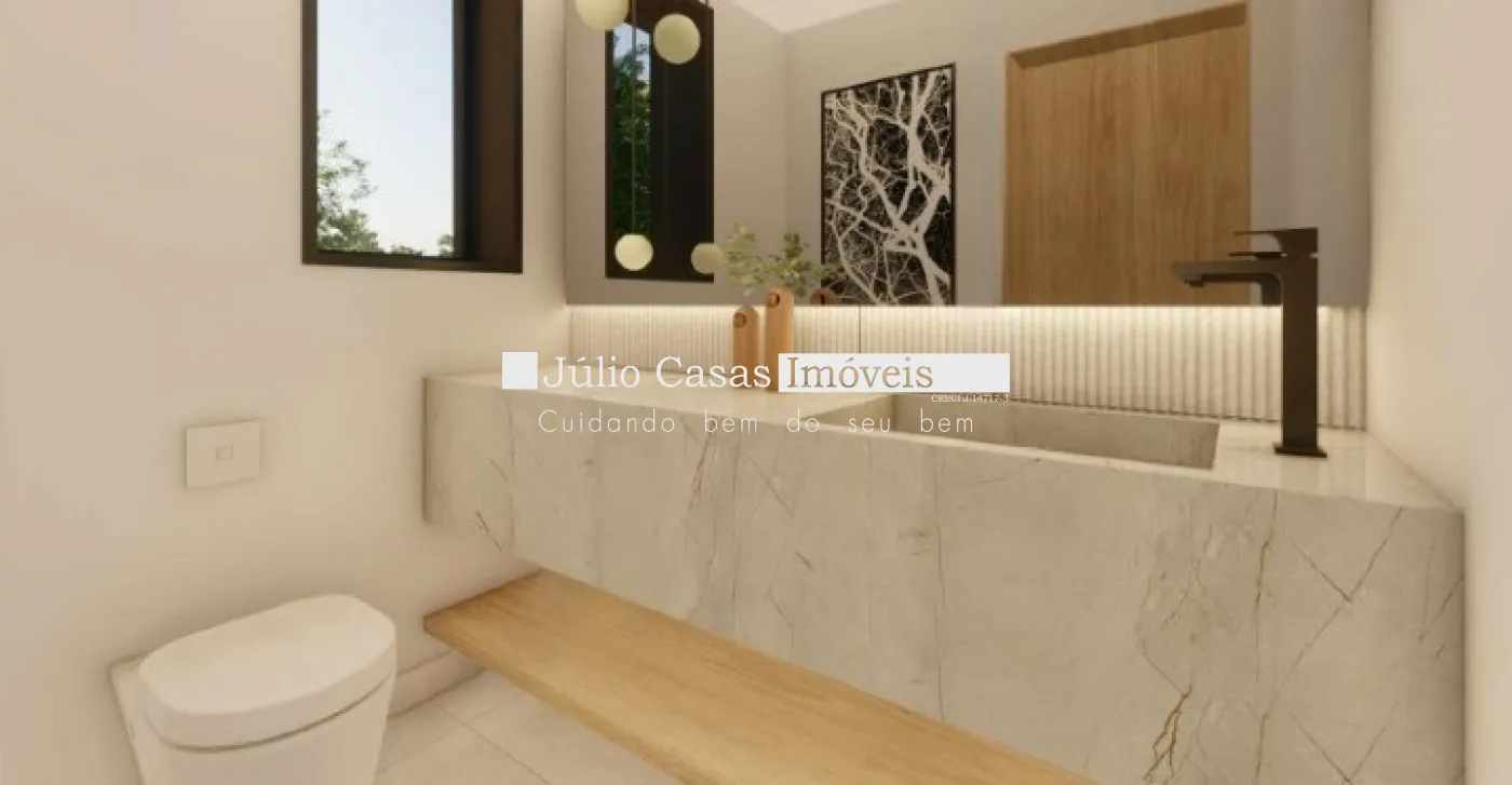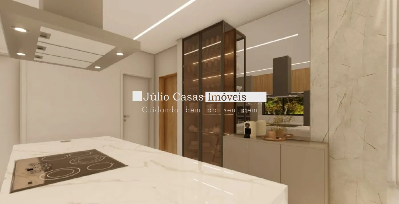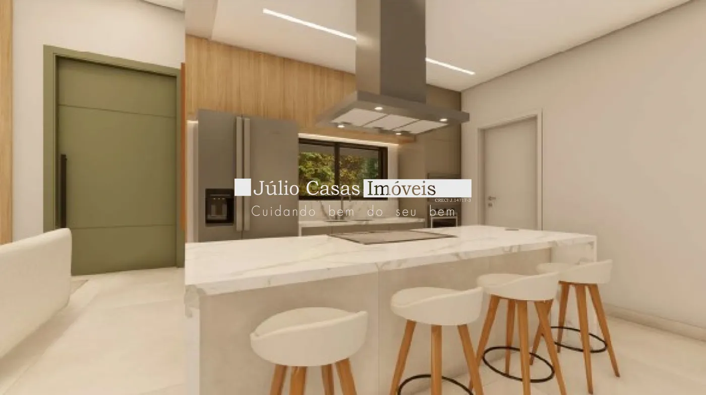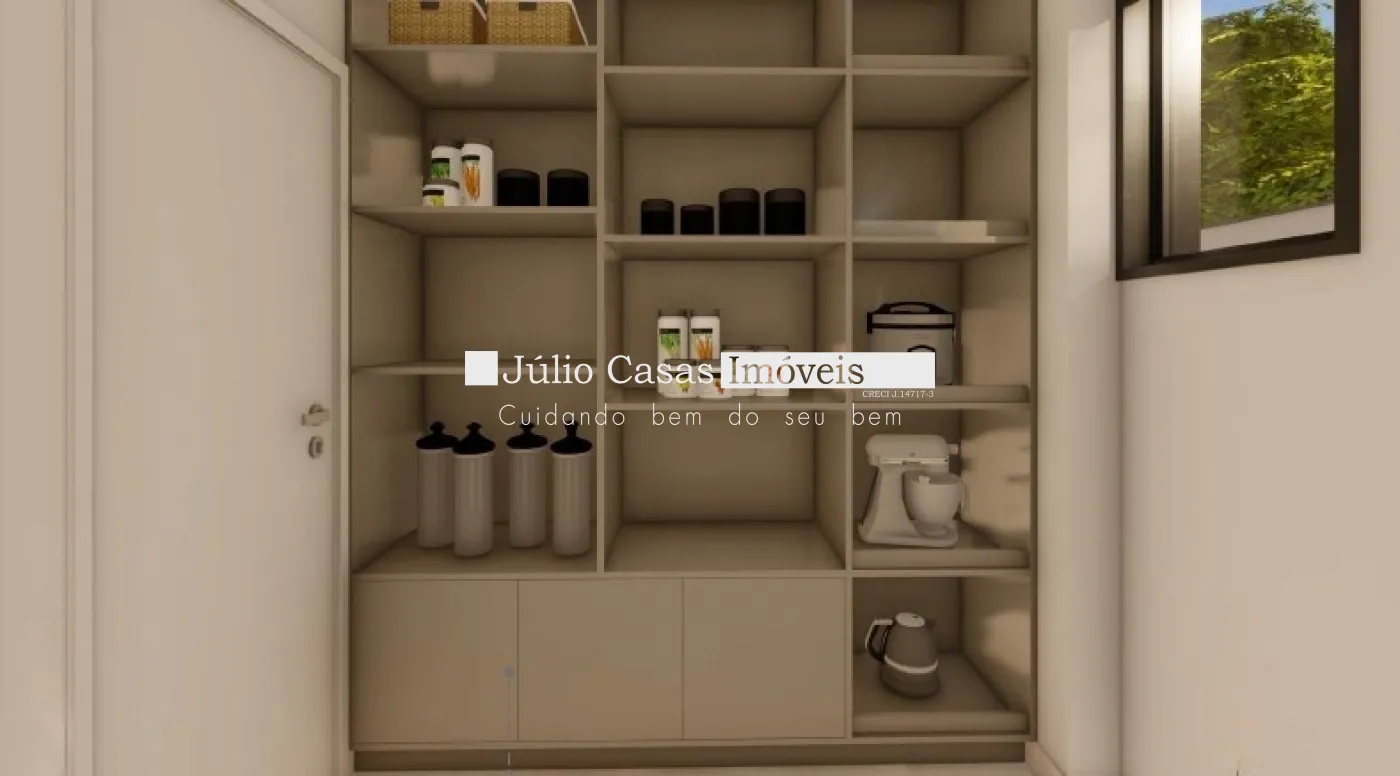 A residência conta com área de serviço planejada, três suítes (sendo uma master) e um prático escritório. Todos os ambientes serão entregues com armários modulados de alto padrão, garantindo praticidade, conforto e acabamento de excelência.