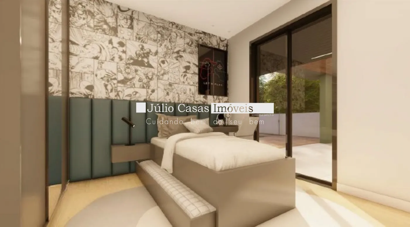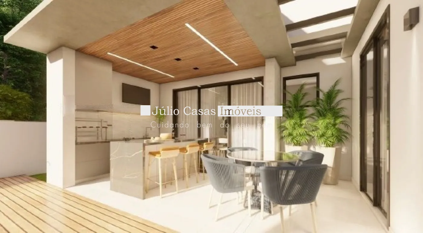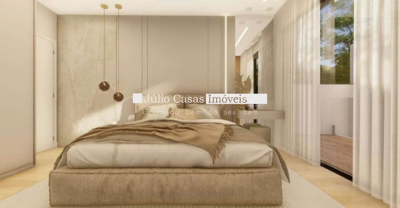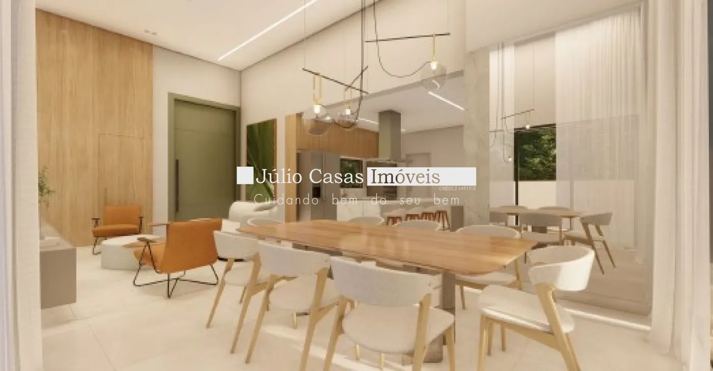 A residência conta com área de serviço planejada, três suítes (sendo uma master) e um prático escritório. Todos os ambientes serão entregues com armários modulados de alto padrão, garantindo praticidade, conforto e acabamento de excelência.