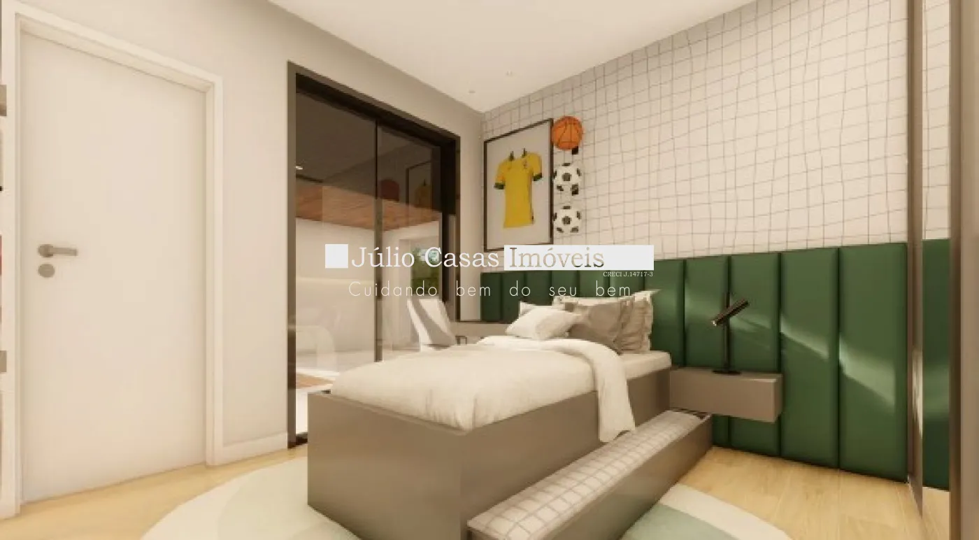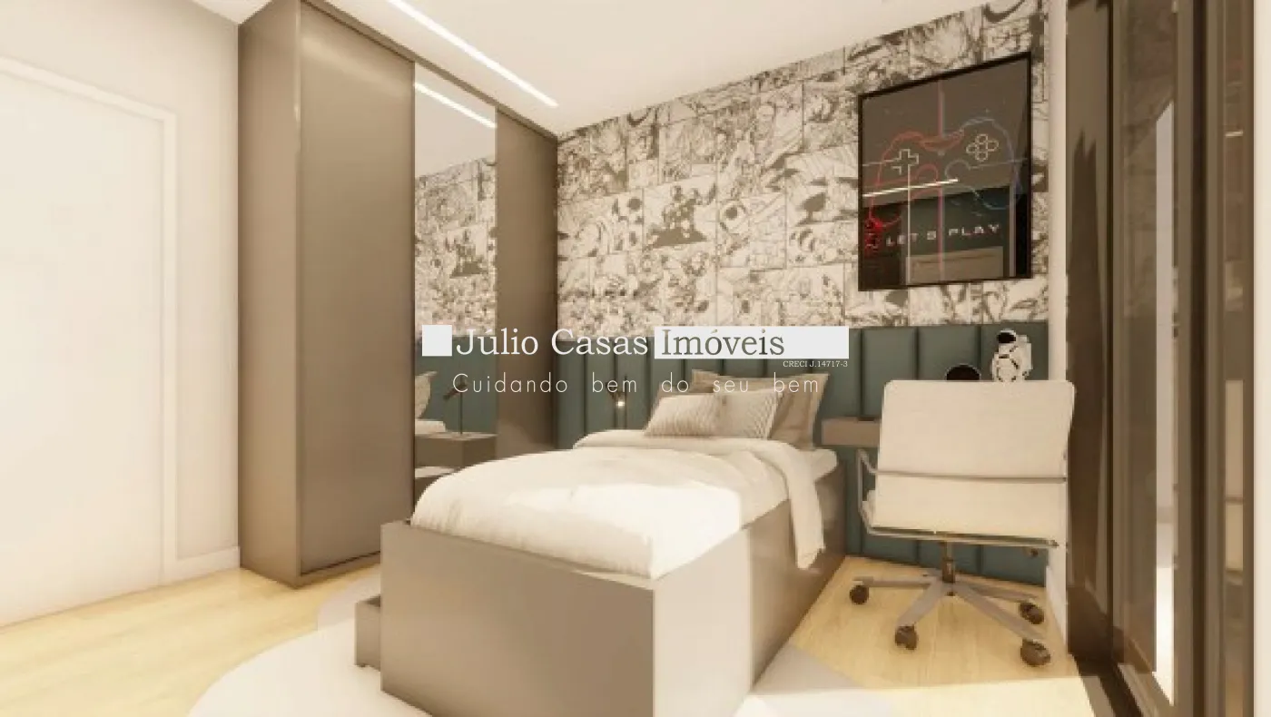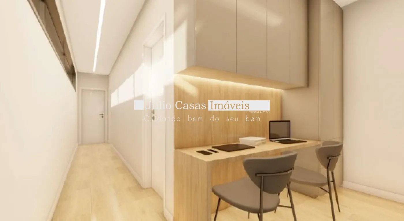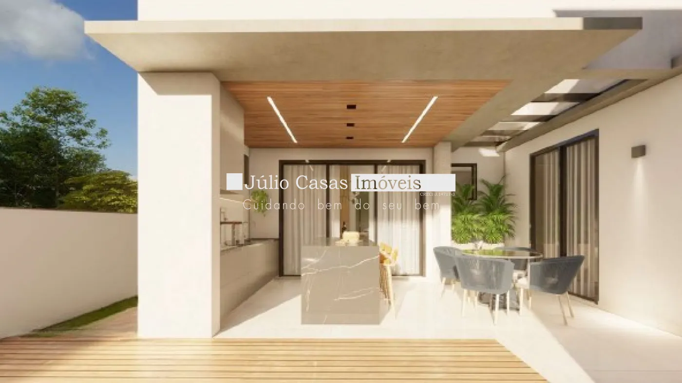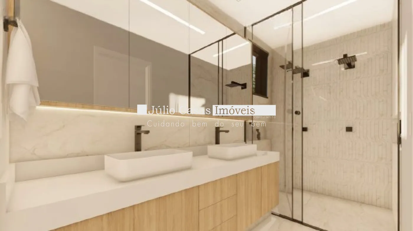A residência conta com área de serviço planejada, três suítes (sendo uma master) e um prático escritório. Todos os ambientes serão entregues com armários modulados de alto padrão, garantindo praticidade, conforto e acabamento de excelência.