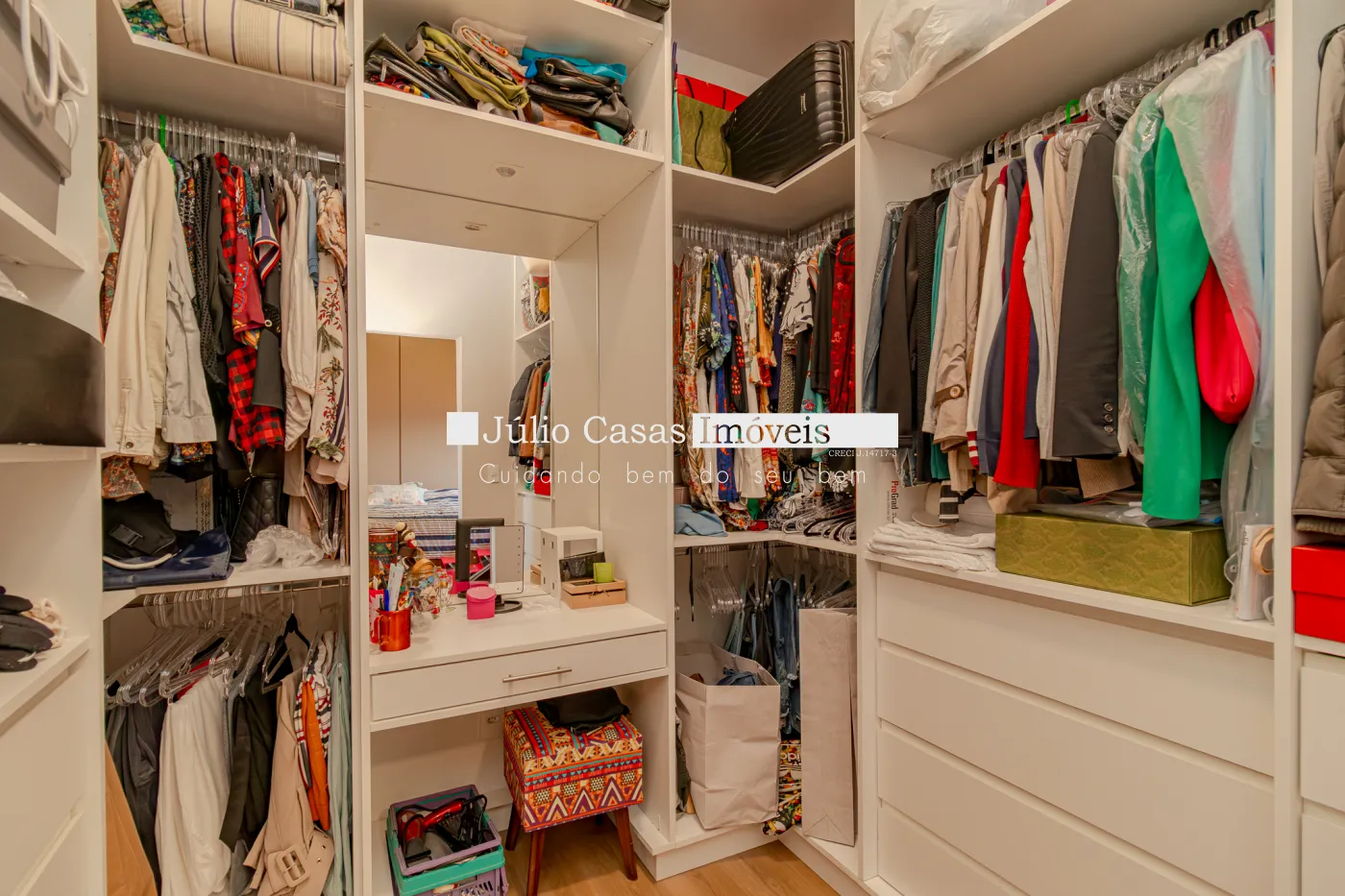 - 4 suítes amplas, todas com closets espaçosos, sendo 2 suítes no térreo, garantindo acessibilidade e praticidade;