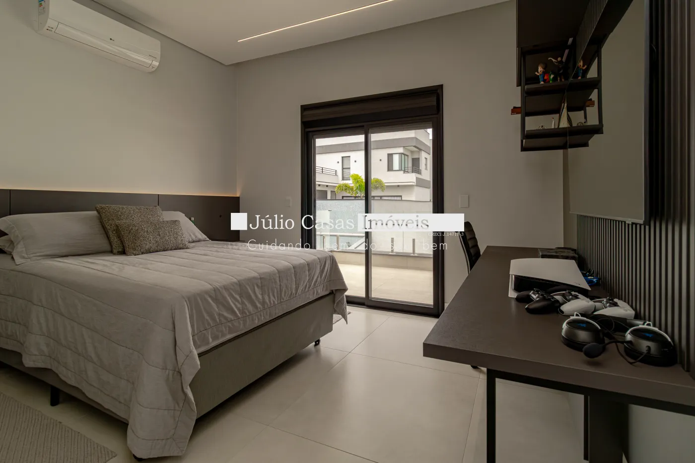 Na área íntima, o conforto é absoluto. São 4 suítes, todas equipadas com ar-condicionado e toalheiros térmicos. Duas delas, incluindo a suíte master, contam com armários planejados e closet, oferecendo praticidade, organização e elegância no dia a dia.