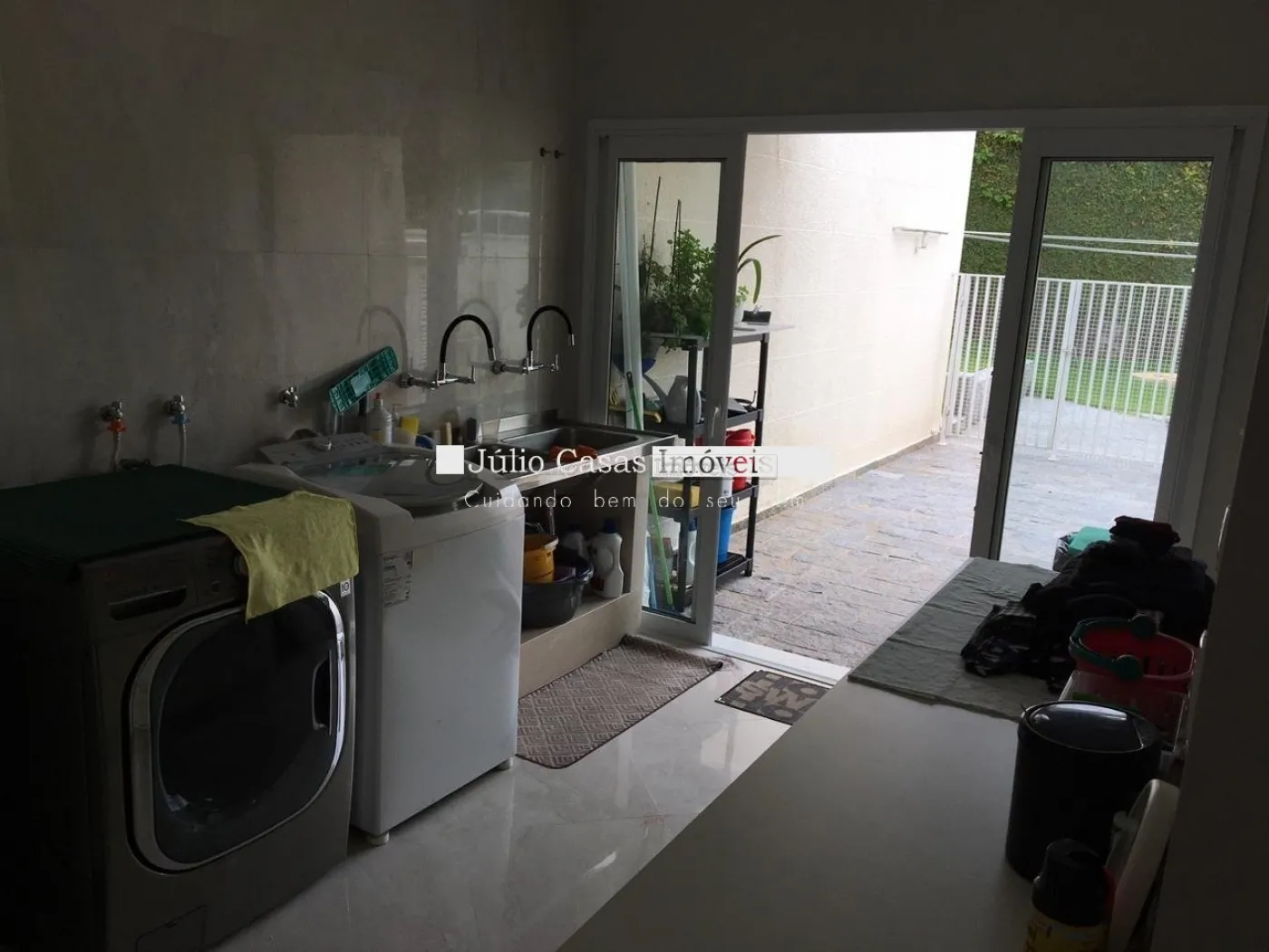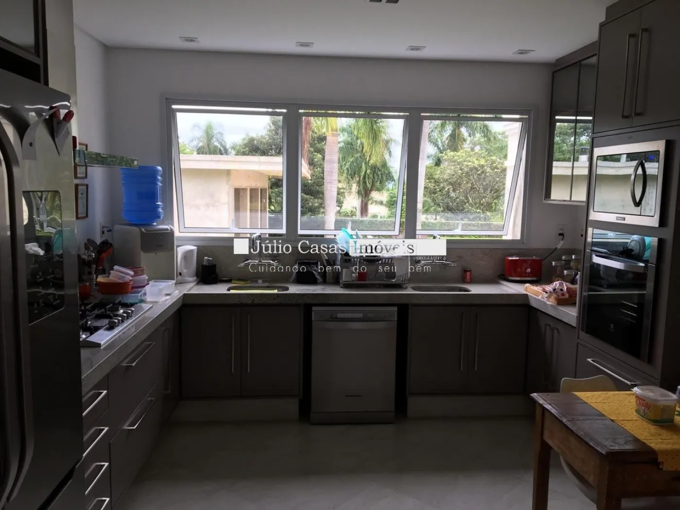 Cozinha planejada completa com piso em porcelanato, balcão em granito com duas cubas em inox, bancada com cooktop, maquina de lavar louças. Lavanderia com depósito, dependência de empregada completa.