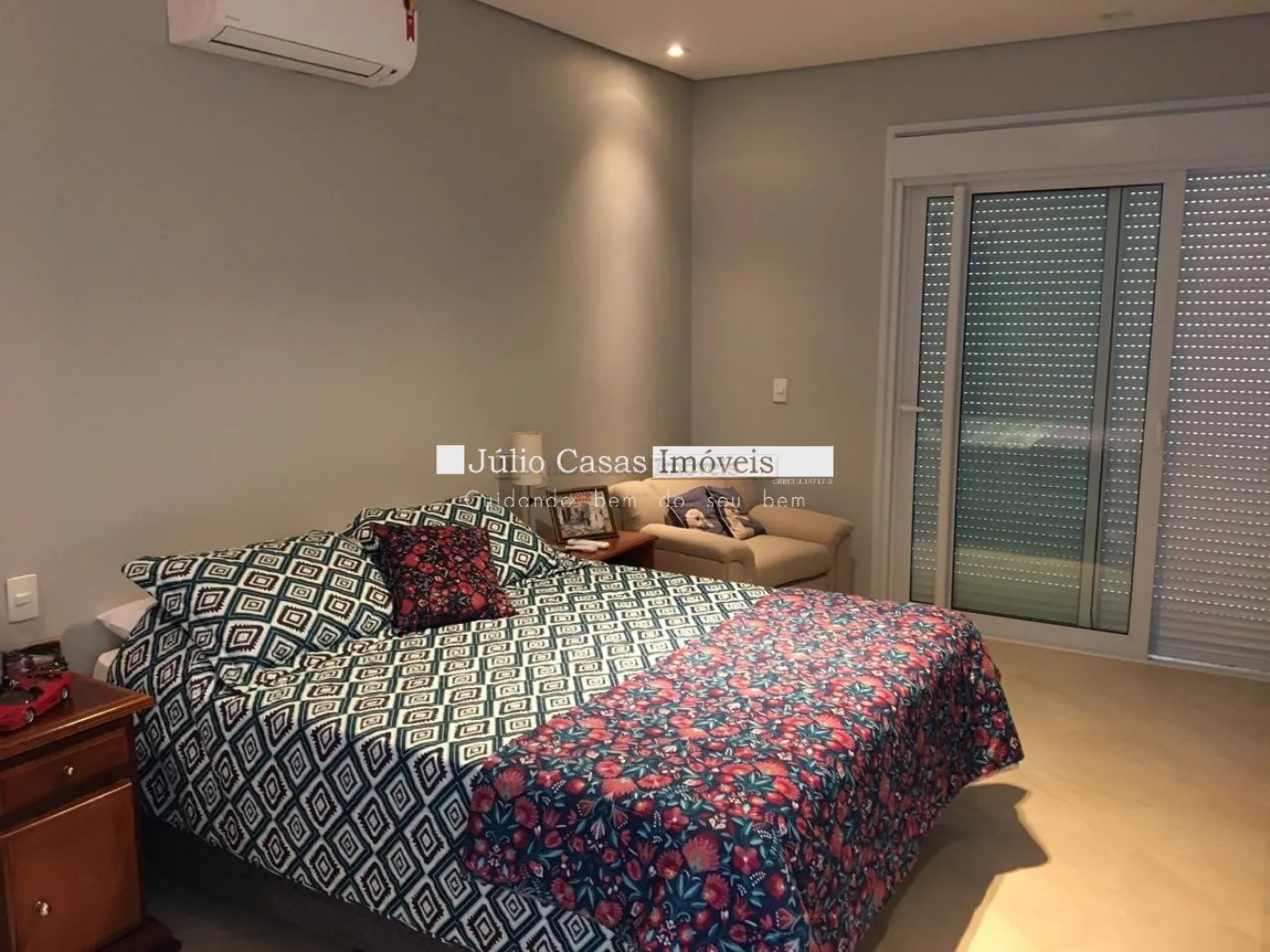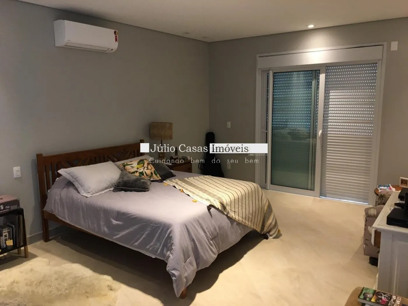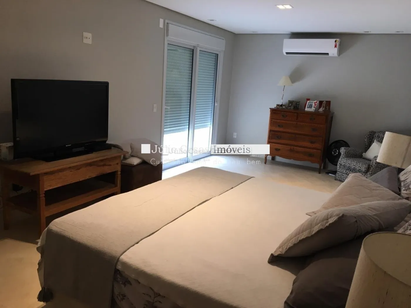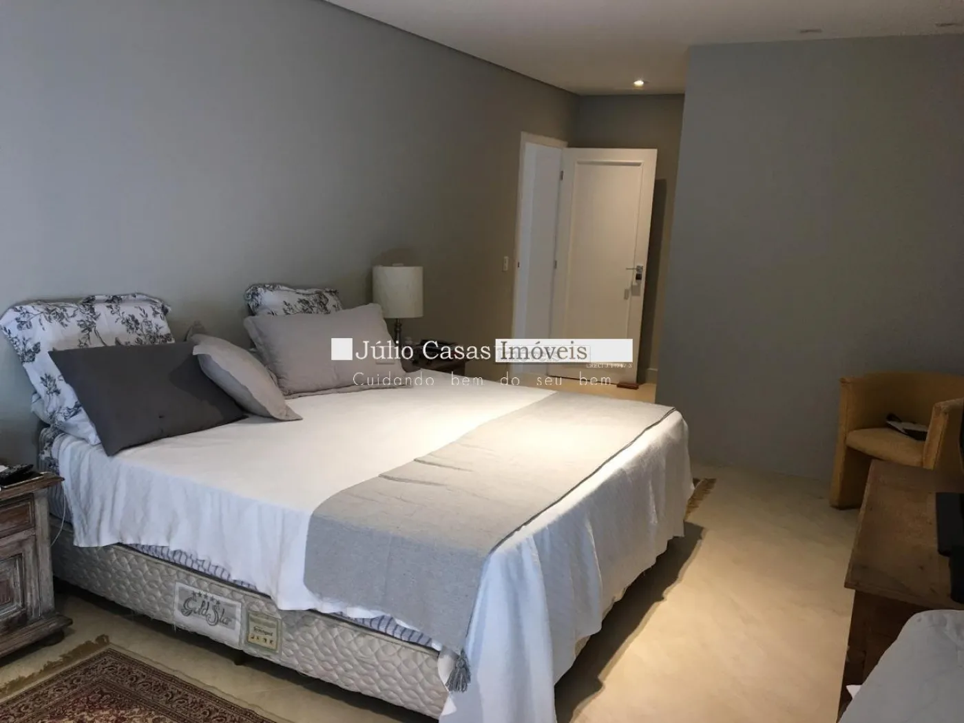 5 suítes sendo duas másters, closet, ar condicionado, portas balcão em alumínio com pintura adonisada branca e piso revestido em porcelanato.