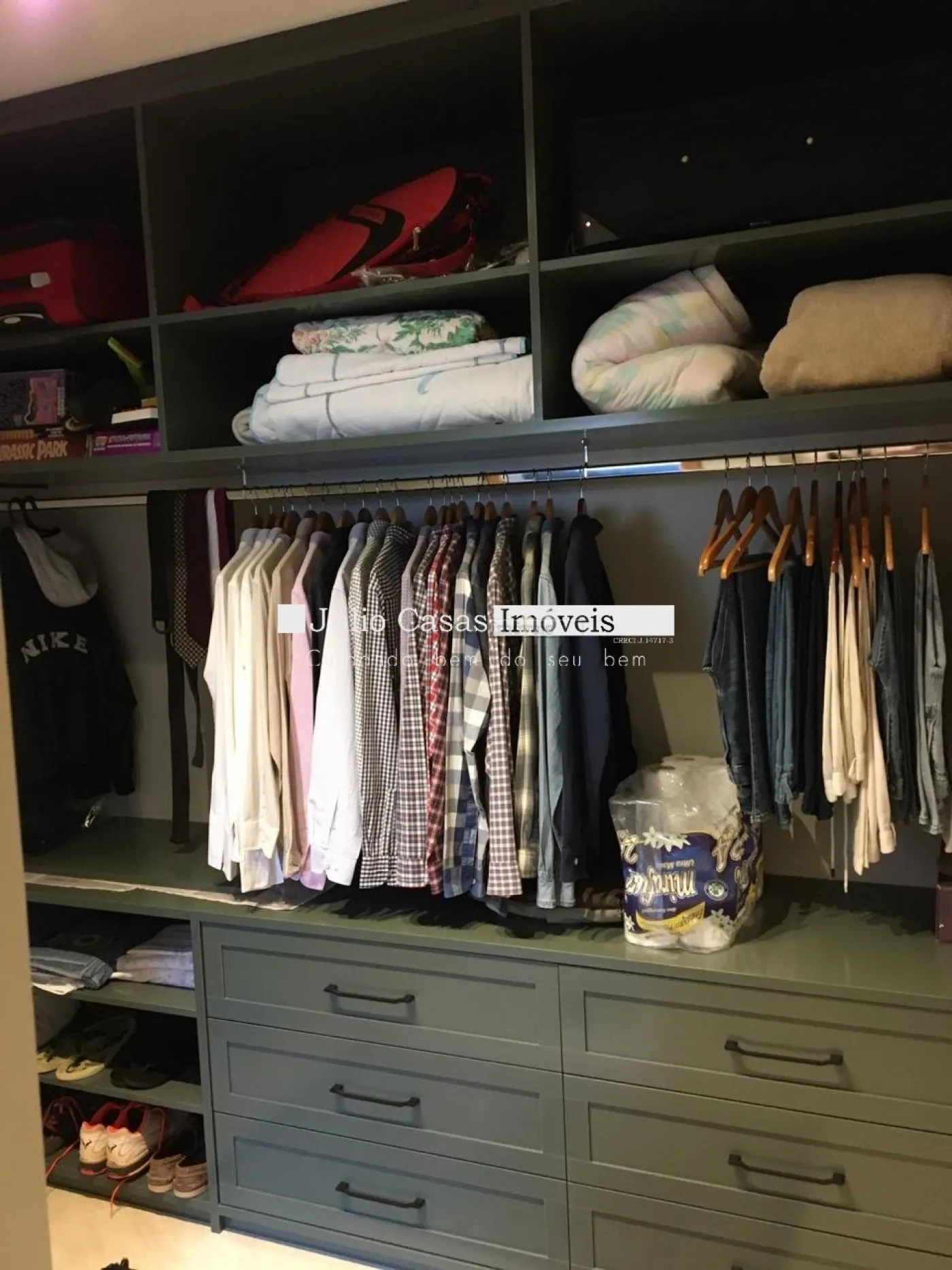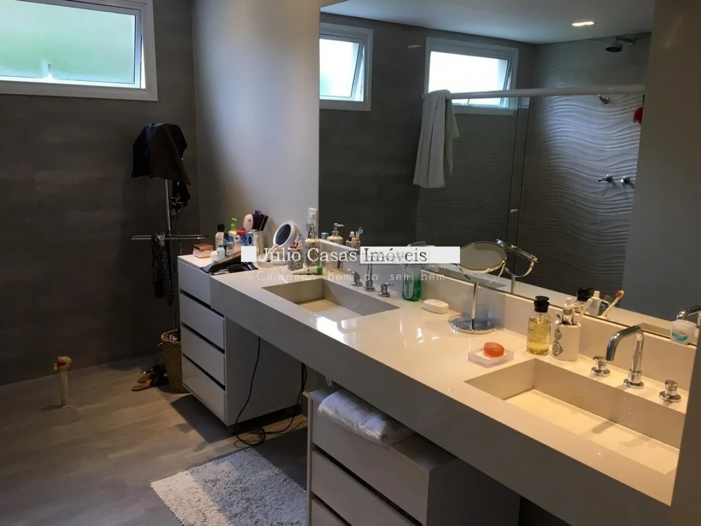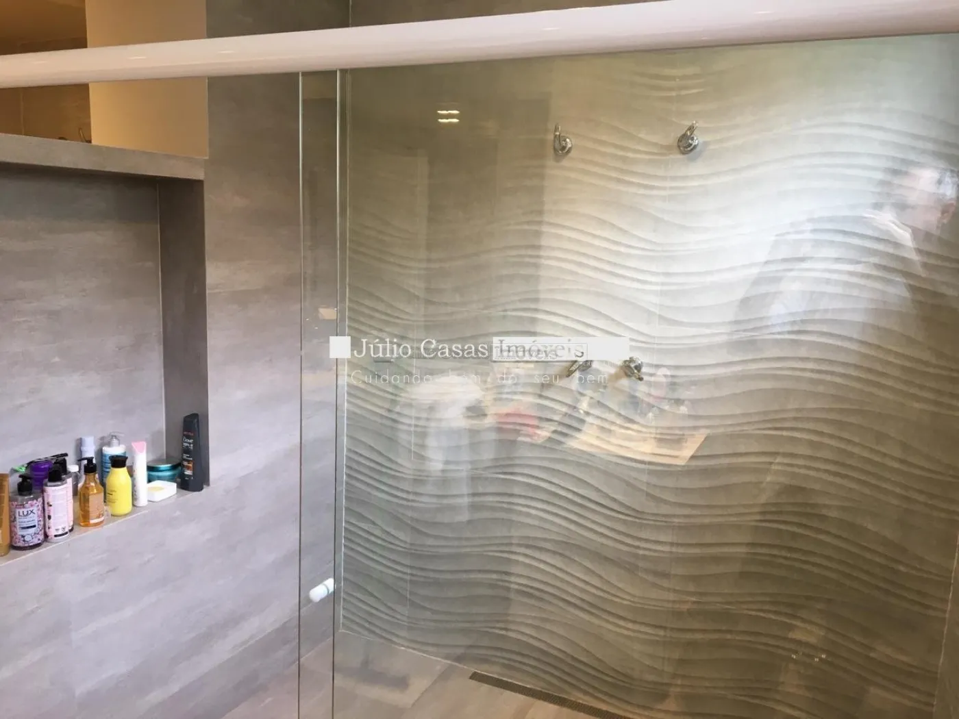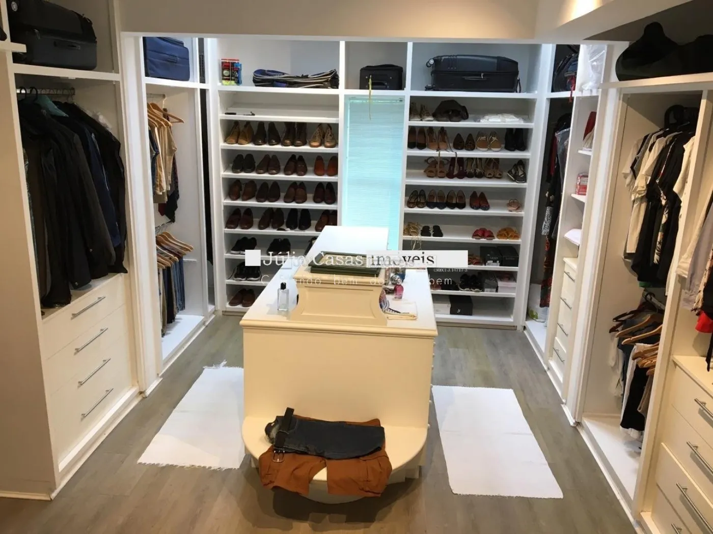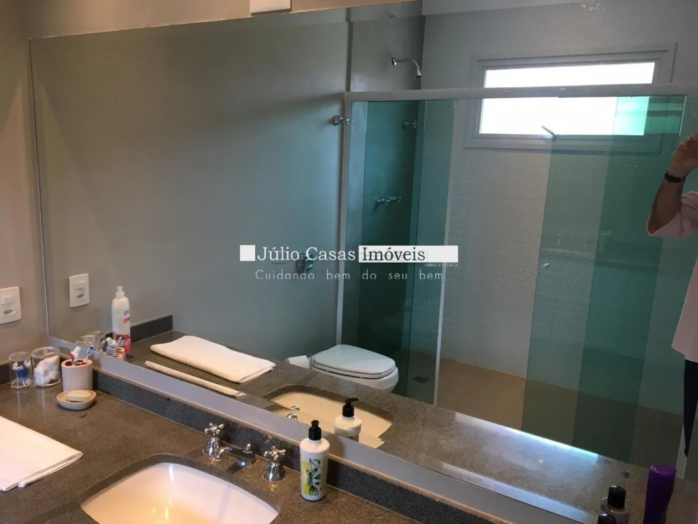 5 suítes sendo duas másters, closet, ar condicionado, portas balcão em alumínio com pintura adonisada branca e piso revestido em porcelanato.