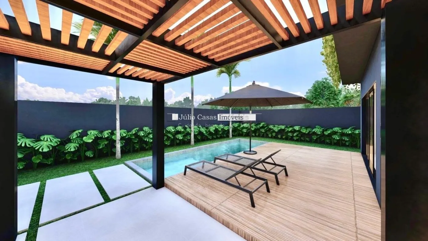 A casa é adornada com acabamento em gesso e possui uma piscina com prainha, ideal para momentos de lazer e relaxamento. A área externa conta ainda com banheiros e depósito, oferecendo praticidade e funcionalidade.