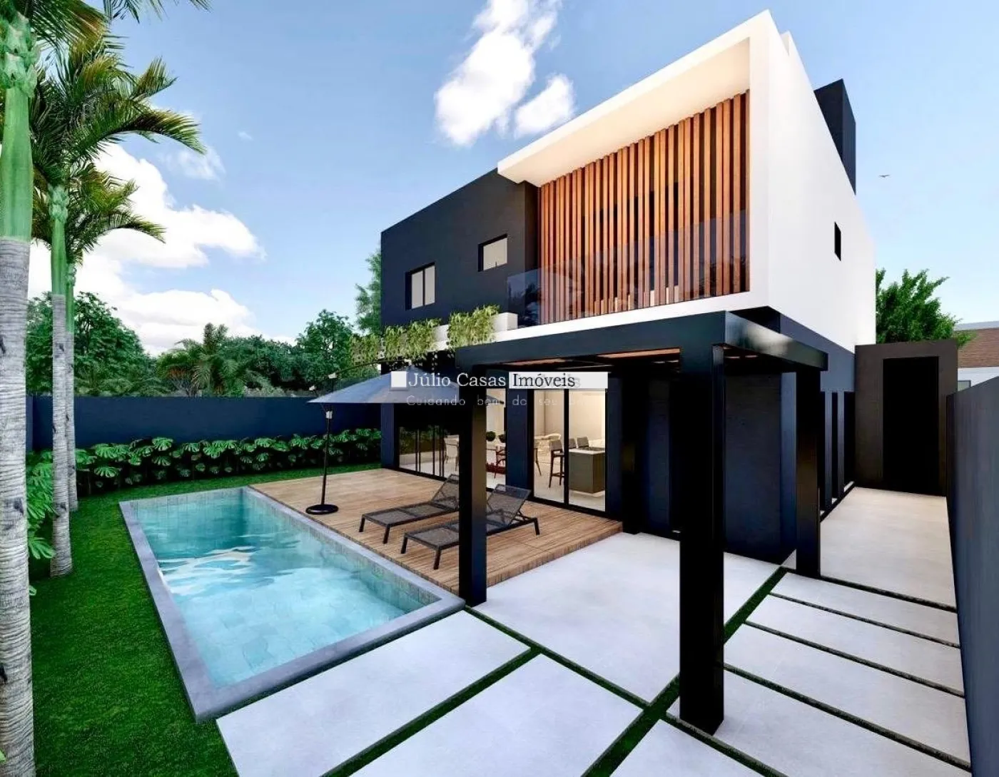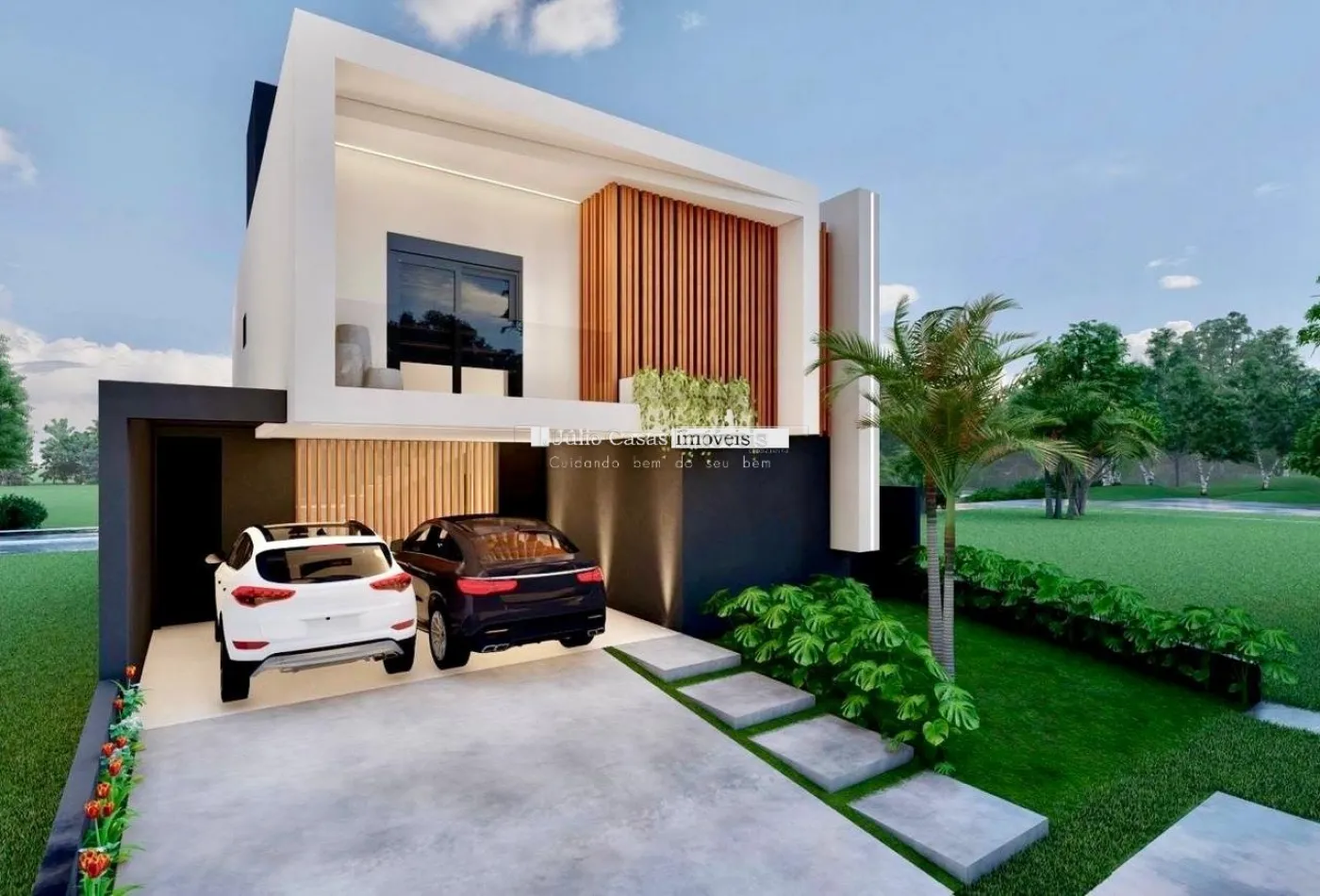 O sobrado possui 3 suítes, sendo uma máster com espaço para closet, garantindo privacidade e conforto para toda a família. A garagem acomoda até 4 carros, sendo 2 vagas cobertas, proporcionando segurança e comodidade.