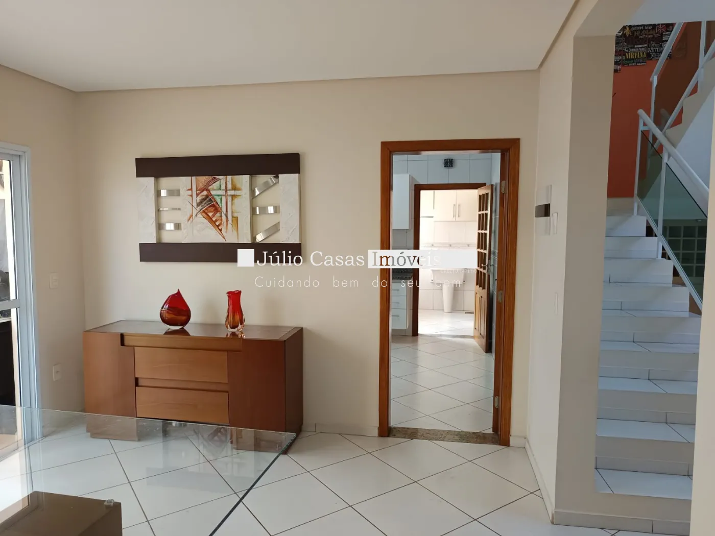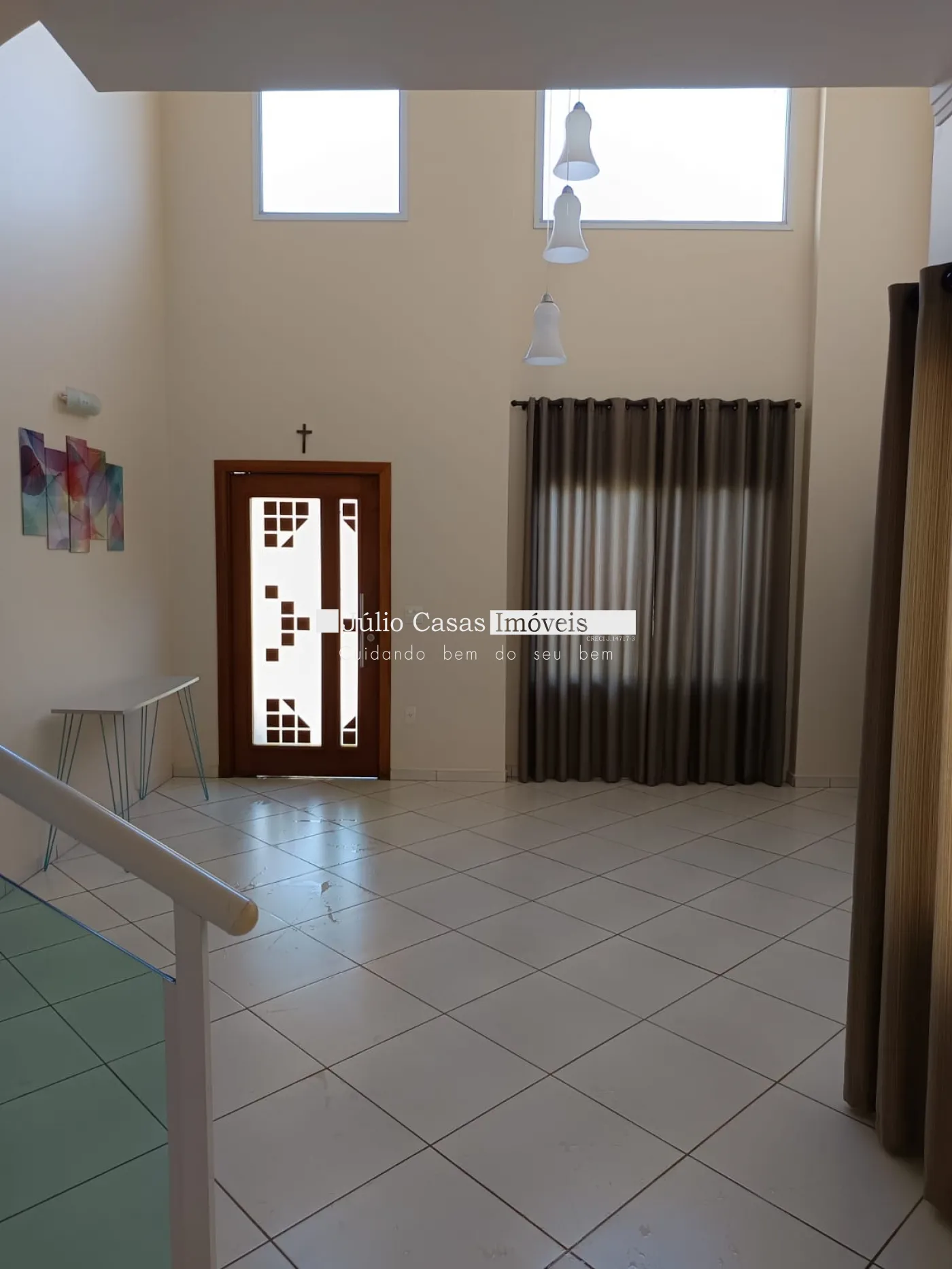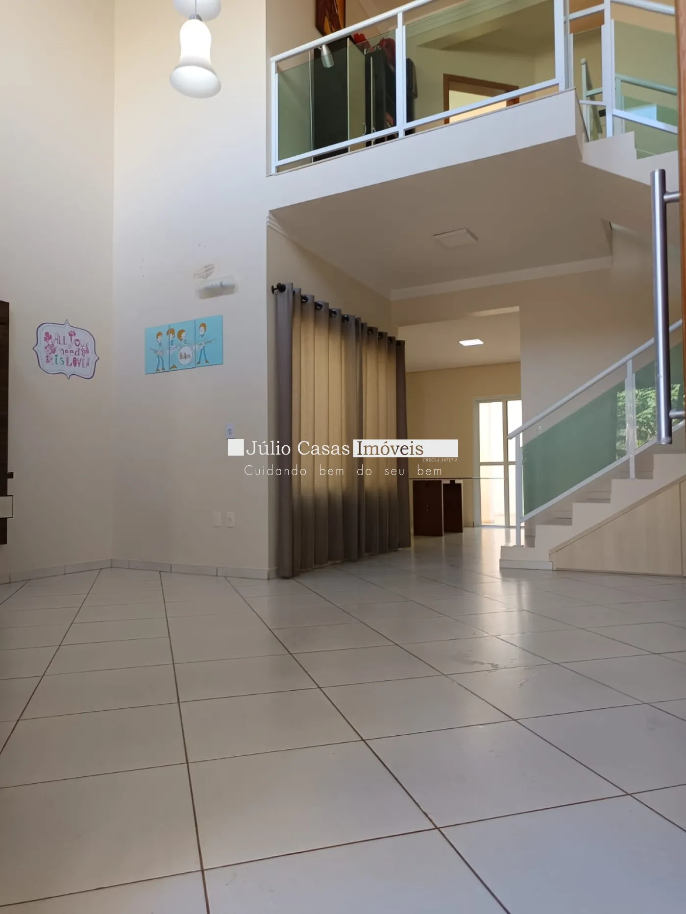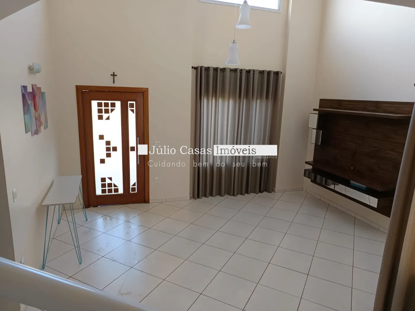 Sobrado a venda em condomínio com sala pé direito alto com rack para tv, cozinha ampla com armários, despensa, entrada independente de serviço.