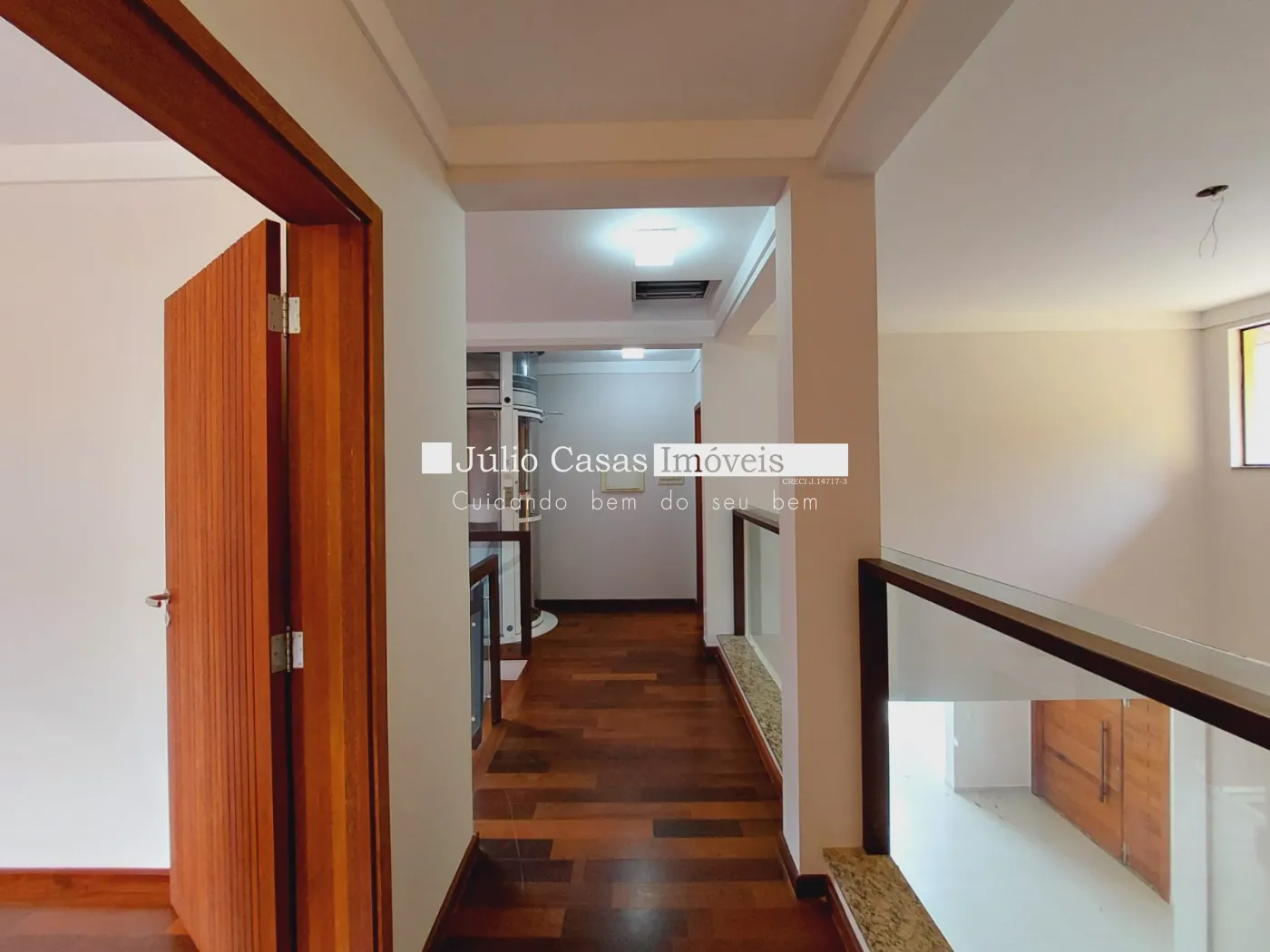 Casa a venda e aluguel no condomínio Aldeia da Mata com elevador, sala de estar com lareira com pé direito duplo, sala de jantar, sala de televisão com wc, lavabo, cozinha toda modulada e sala de almoço, área de serviço com armários, depósito e 5 vagas de garagem sendo 3 cobertas. Área gourmet com churrasqueira, pia de apoio, ofurô, quintal gramado com paisagismo.