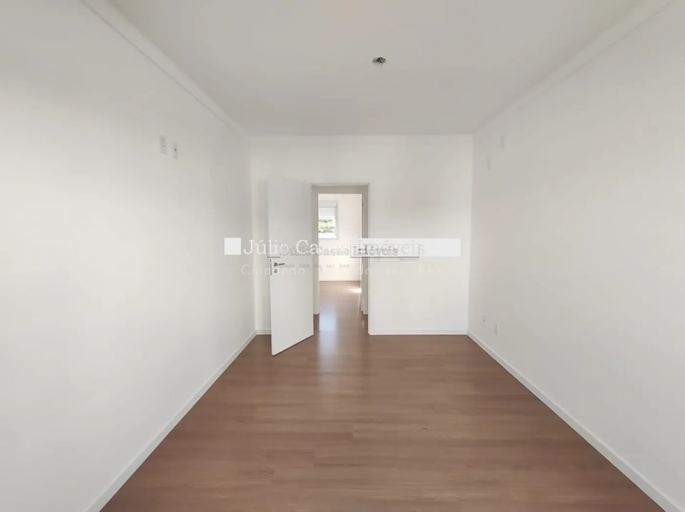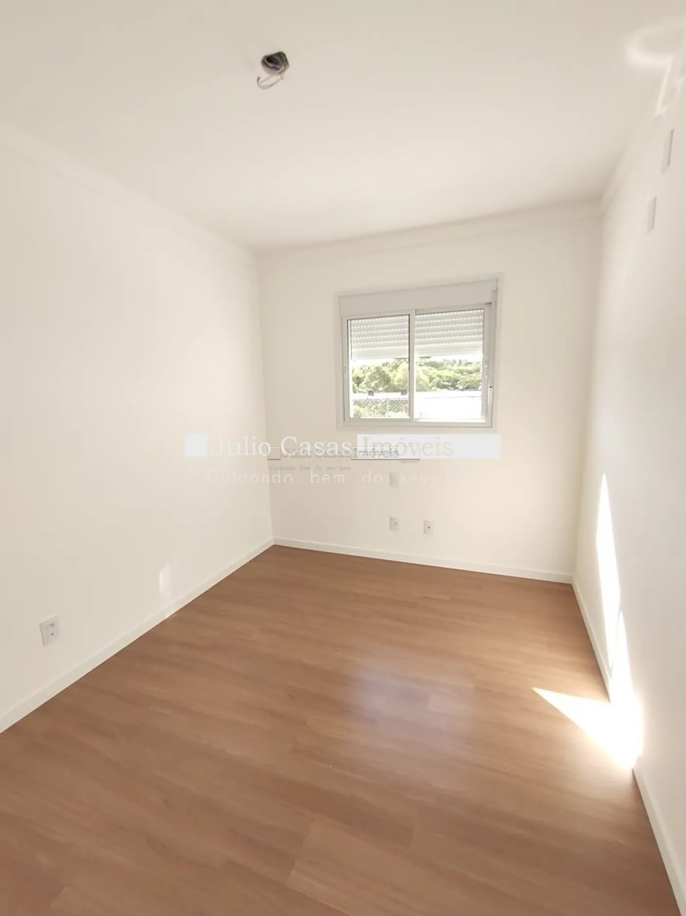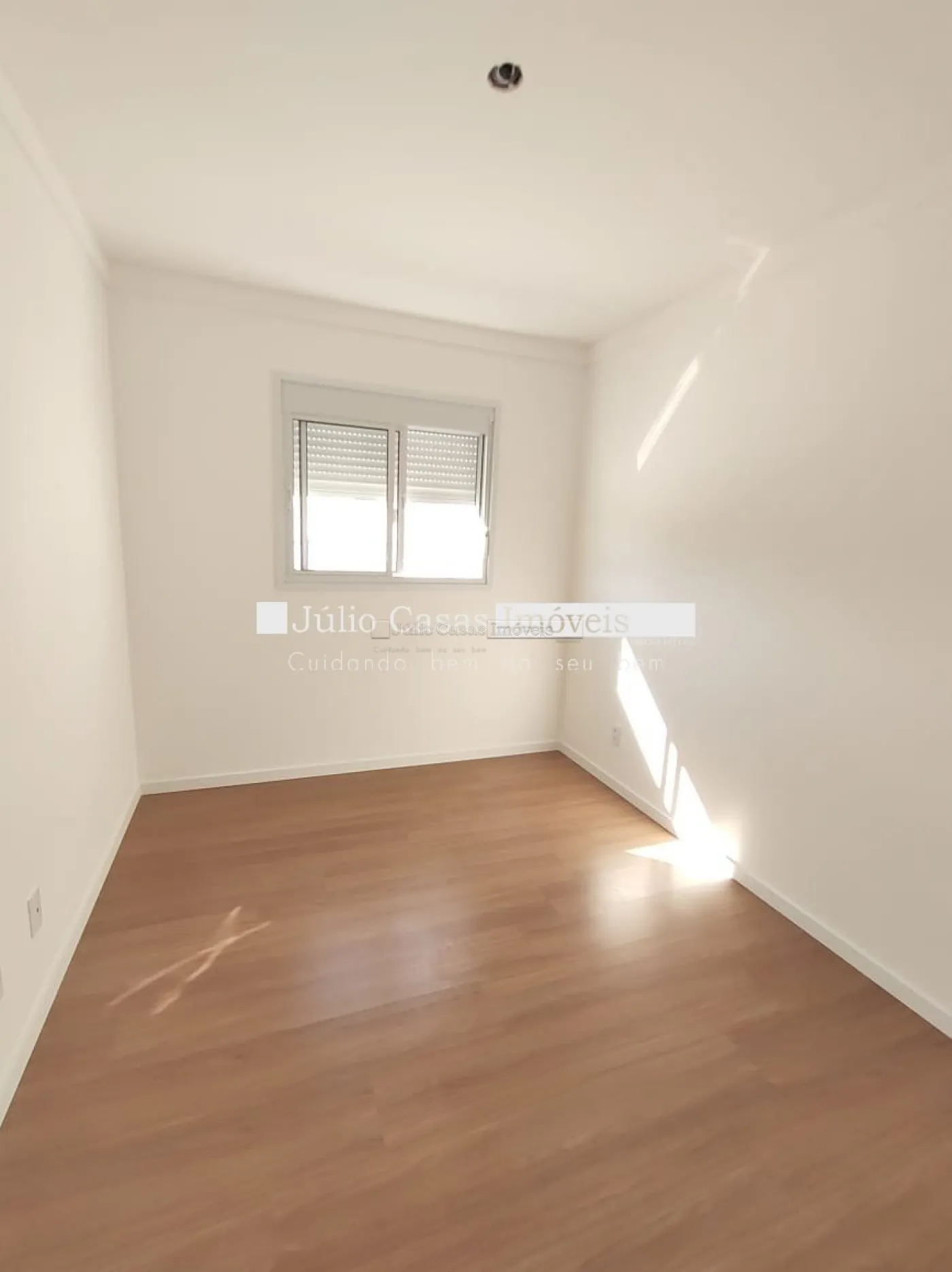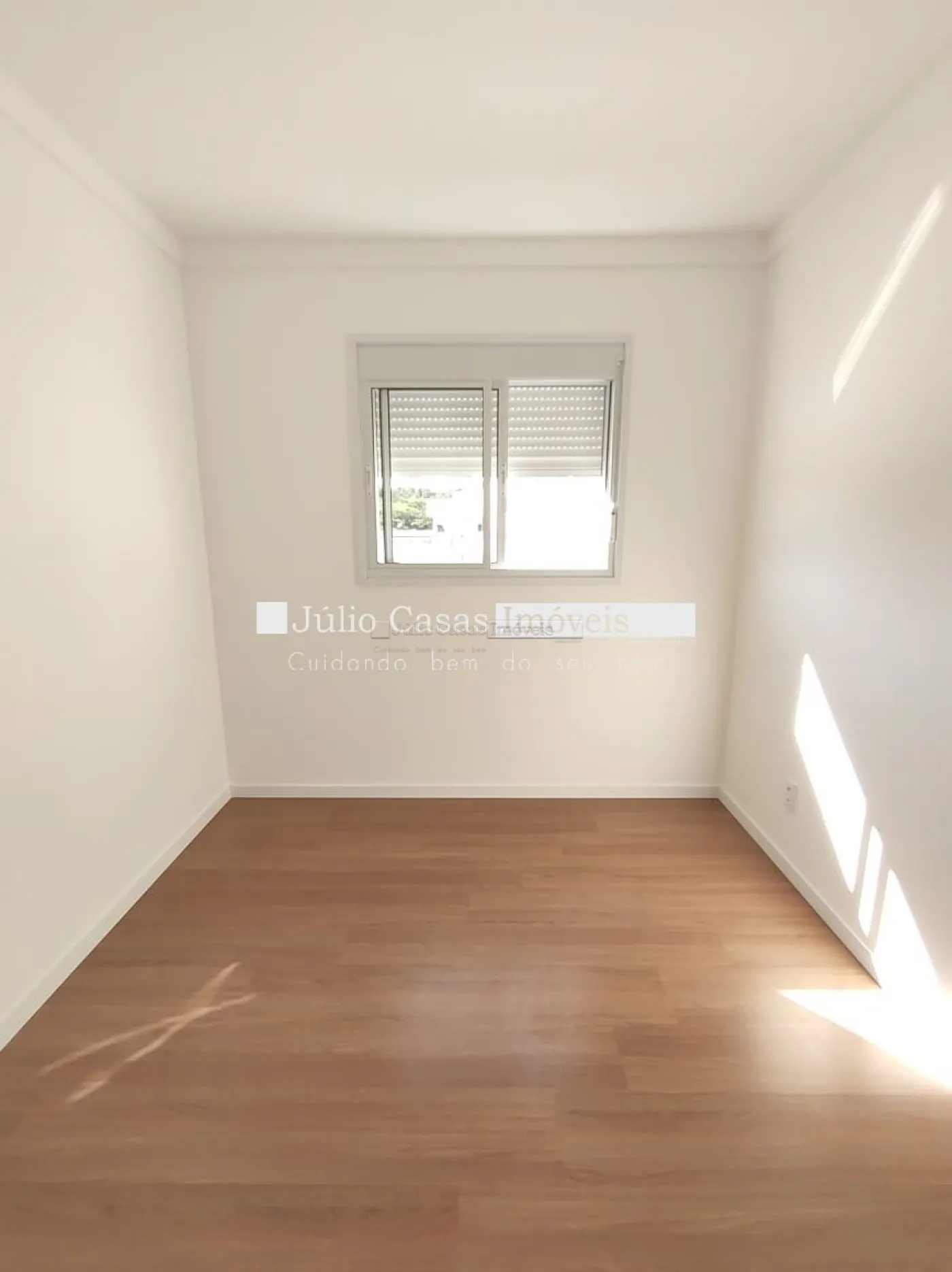 Os dormitórios são revestidos em piso laminado, enquanto os demais ambientes contam com piso em porcelanato. O imóvel dispõe de duas vagas de garagem cobertas.