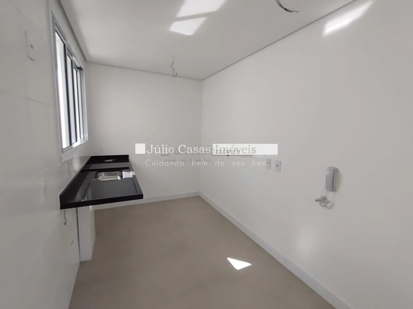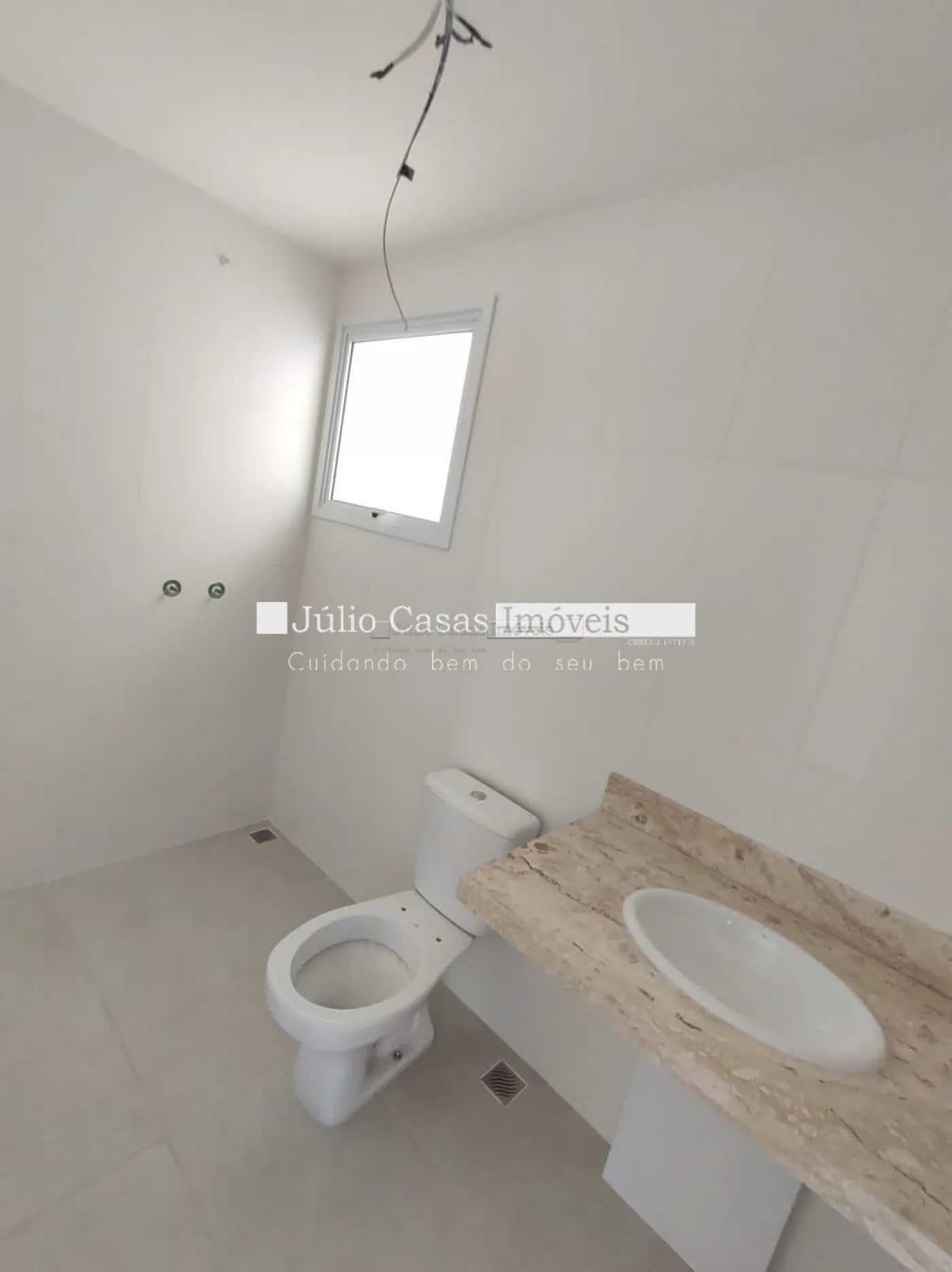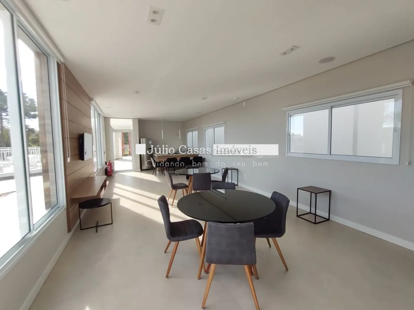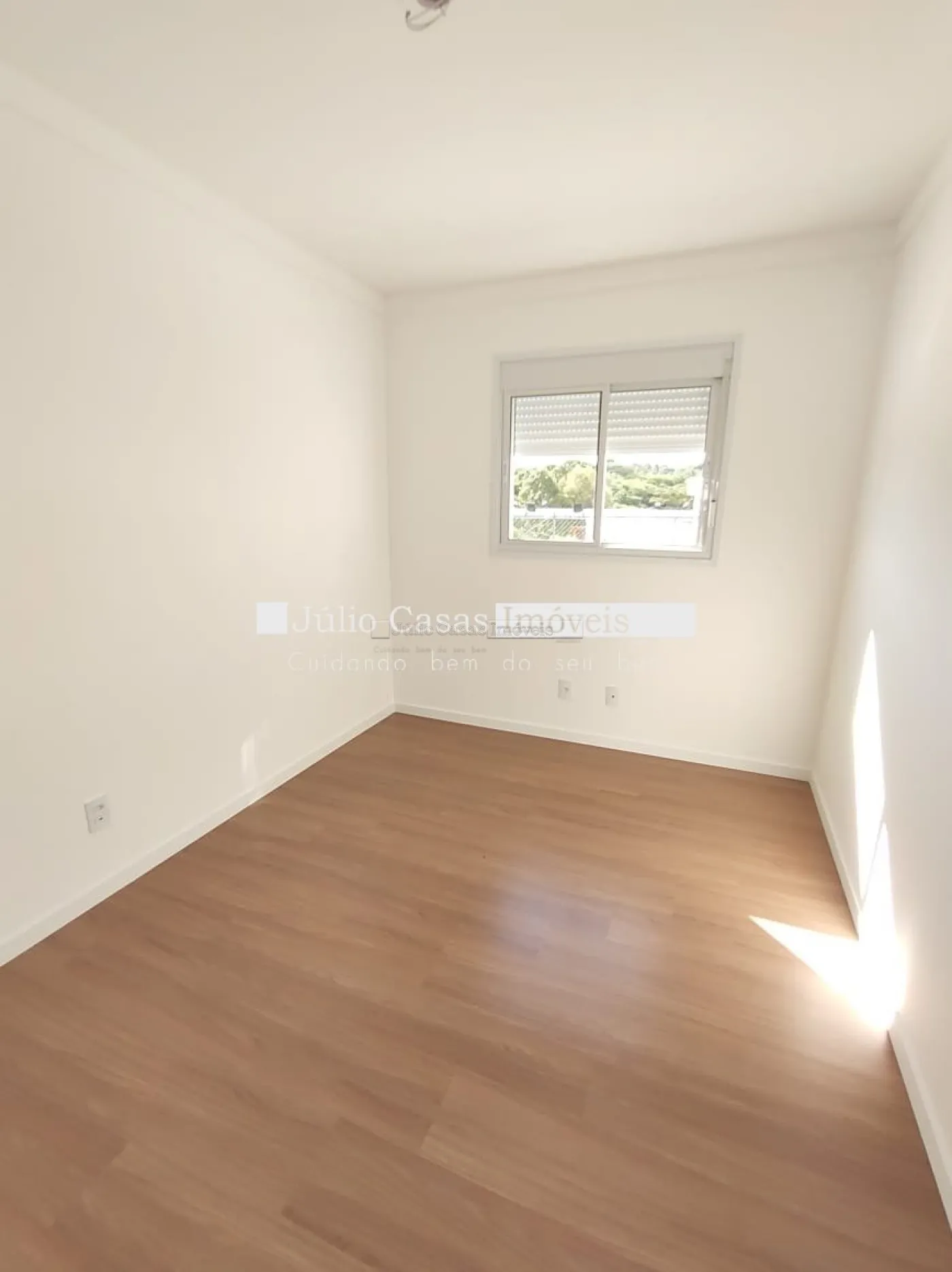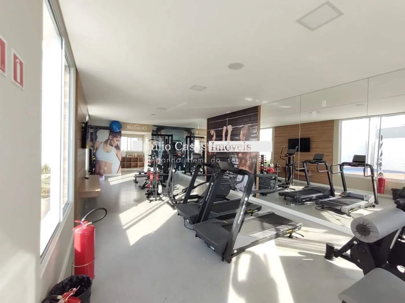 Os dormitórios são revestidos em piso laminado, enquanto os demais ambientes contam com piso em porcelanato. O imóvel dispõe de duas vagas de garagem cobertas.