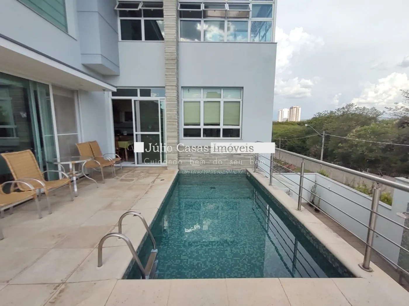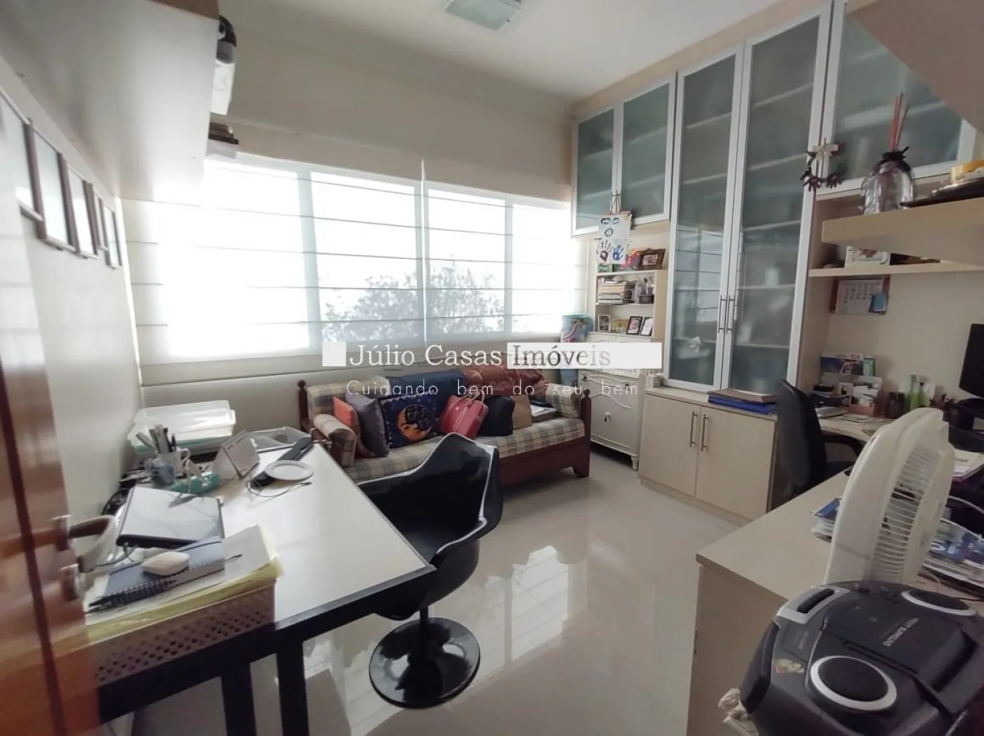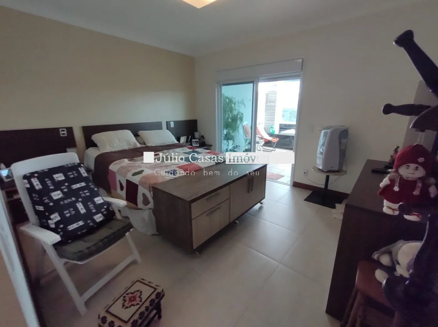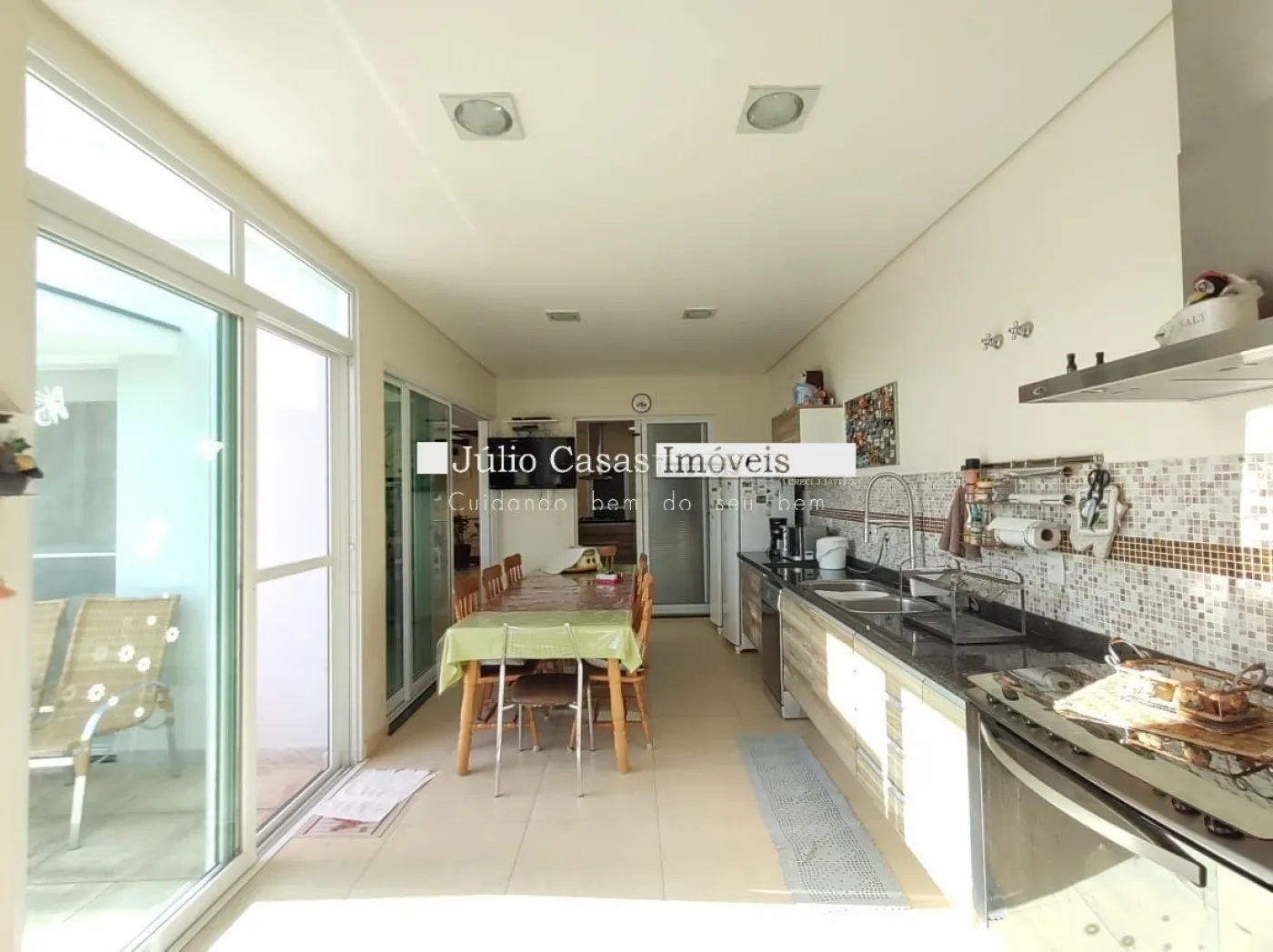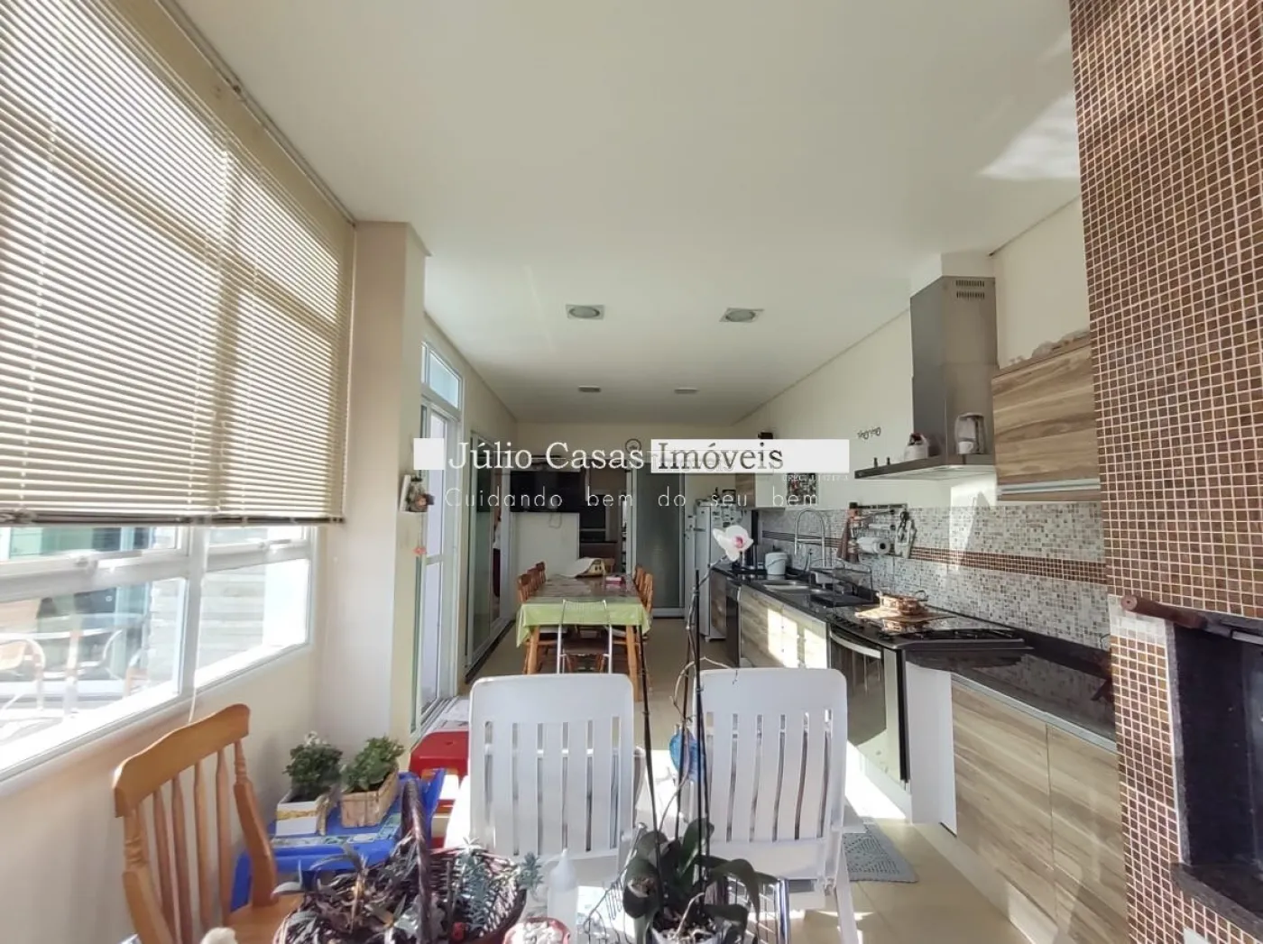 Sala 2 ambientes com pé direito 7 metros, acabamento em gessos com luminárias embutidas, piso em porcelanato, sala integrada com a cozinha e varanda gourmet. Cozinha estilo americana com ilha em granito, bancada, despensa com prateleiras em granito e modulados, coifa em inox, acabamento de primeira linha, área gourmet com churrasqueira e forno, pia de apoio com modulados, piscina aquecida com vista para a mata, escritório com lavabo, 3 suítes moduladas uma com spa, closet e hidromassagem, 2 com varandas grandes, subsolo com salão grande, espaço para quarto, wc, depósito e copa com quintal privativo, podendo ser usado como casa de hóspede.