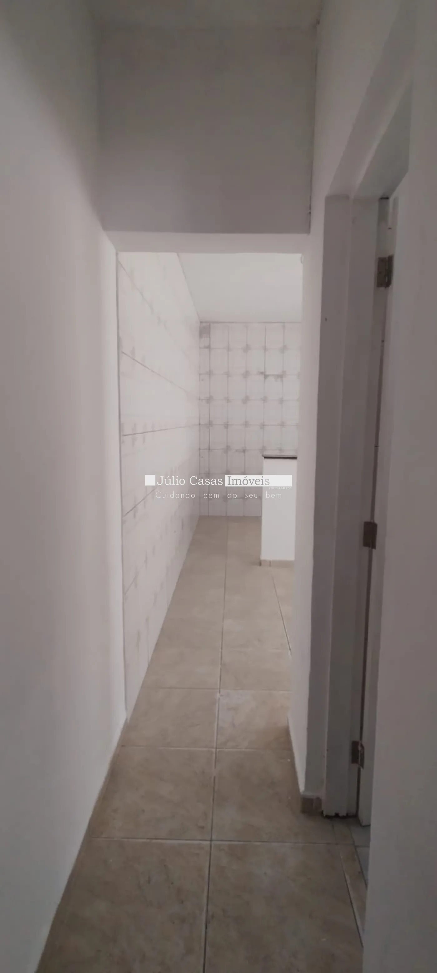 A casa está com um quarto, sala e cozinha separadas por um balcão.