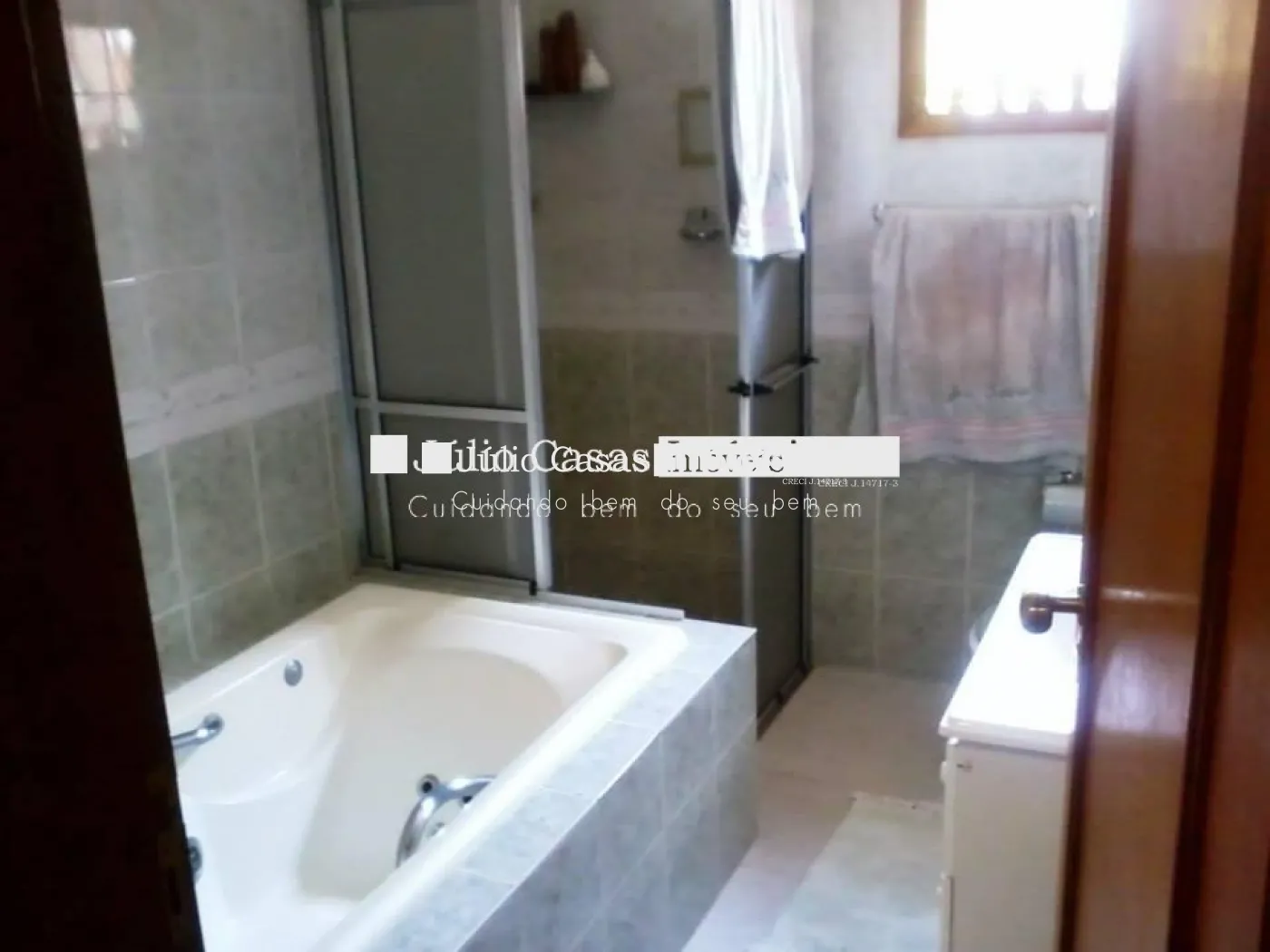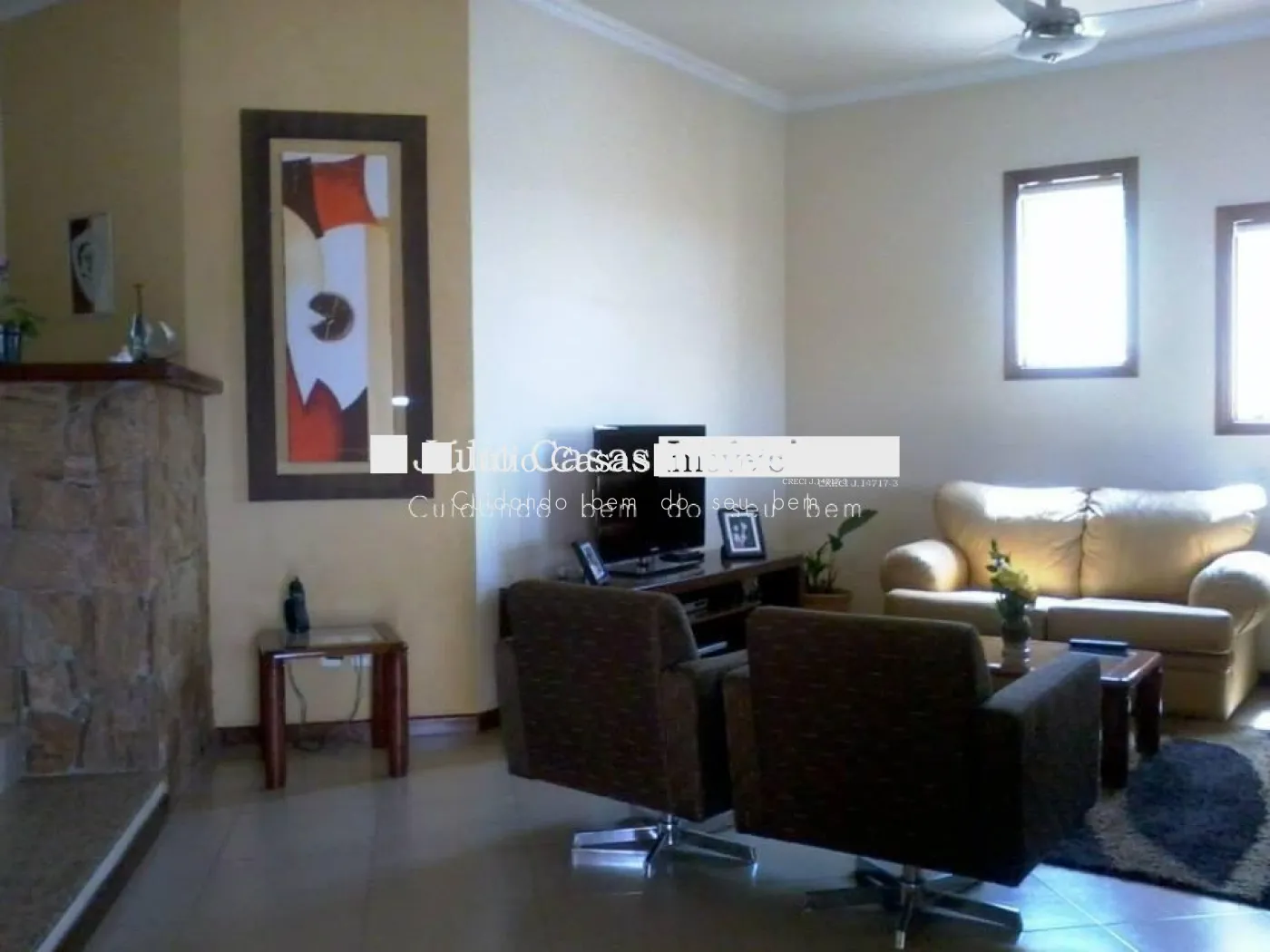 Moderna casa térrea, com projeto para automação bem iluminada e arejada em condomínio com segurança e portaria 24 horas entre a chácara santa maria e fazenda imperial. Ampla frente com jardinagem e calçamento em pedra portuguesa, garagem para 4 carros sendo 2 cobertas e pequeno depósito. Hall de entrada com porta pivotante e acesso ao escritório, lavabo e ampla sala 2 ambientes com pé direito duplo e tela de projeção 3d automática e mais uma sala de tv. Área gourmet interna com churrasqueira, integrada à cozinha e à piscina coberta. Ambientes com moderno equipamento de som automatizado com home, receiver e diversas caixas independentes 9inclusive nas piscinas são 4 suítes, todas com closet, ar condicionado, persianas automáticas tipo blackout, banheiros com gabinetes, cubas sobrepostas, duchas íntimas e box em vidro temperado. Cozinha com armários e despensa, copa, área de serviço com armários, quarto e banheiro de empregada. Os pisos dos dormitórios são em tábua corrida e os demais cômodos são em porcelanato. Os tetos são rebaixados com luminárias embutidas. possui 2 piscinas, 1 coberta e aquecida integrada à área gourmet e banheiro auxiliar e outra externa, ambas com deck em porcelanato. Casa de máquinas subterrânea sob quintal gramado. agora com cerca elétrica e monitoramente completo com cameras . Segurança total!