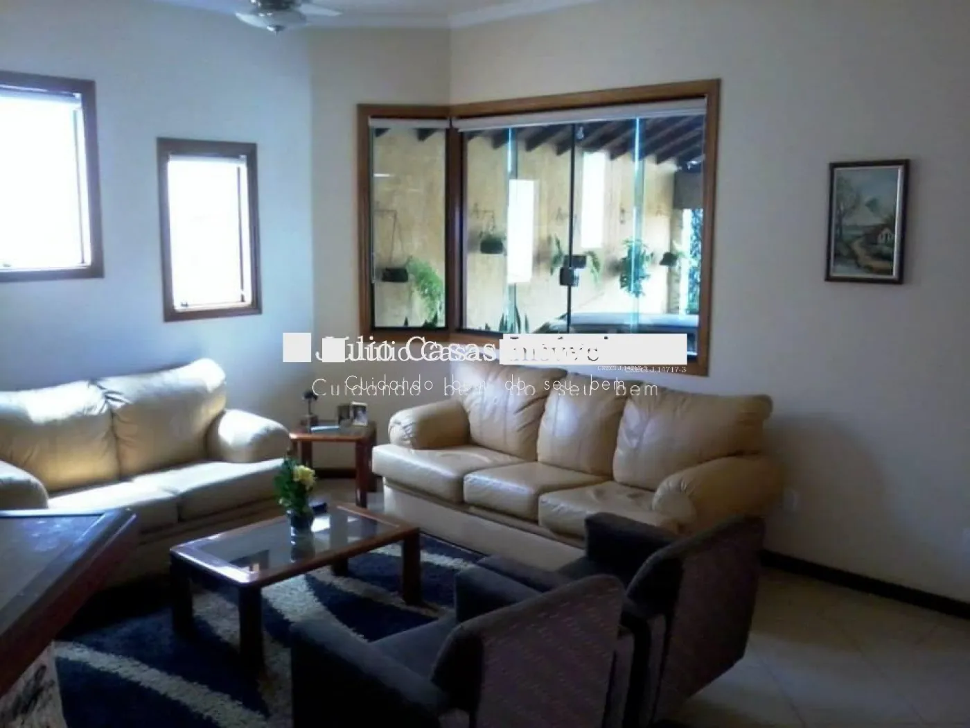Lindíssimo sobrado que ao adentrar você se depara com uma espaçosa sala 3 ambientes com pé direito duplo, cozinha e área gourmet integrados à sala, lavabo, lavanderia, banheiro de serviço e depósito. Home office com ar condicionado e com banheiro, e piso vinílico Durafloor instalado. Piscina e paisagismo muito bem elaborado, churrasqueira braseiro Premium com coifa, instalação para Split na sala e iluminação embutida, conectividade Wifi. No andar superior voê se depara com 4 suítes, sendo a principal com closet e varanda. Todos os quartos com ar condicionado e piso vinílico Durafloor e o mesmo piso na área de circulação. Nas áreas molhadas, salas e circulação interna piso em porcelanato Portobelo 90X90 de 1a linha. Placas solares para aquecimento de água e geração de energia. Garagem para 2 vagas cobertas e 3 descobertas