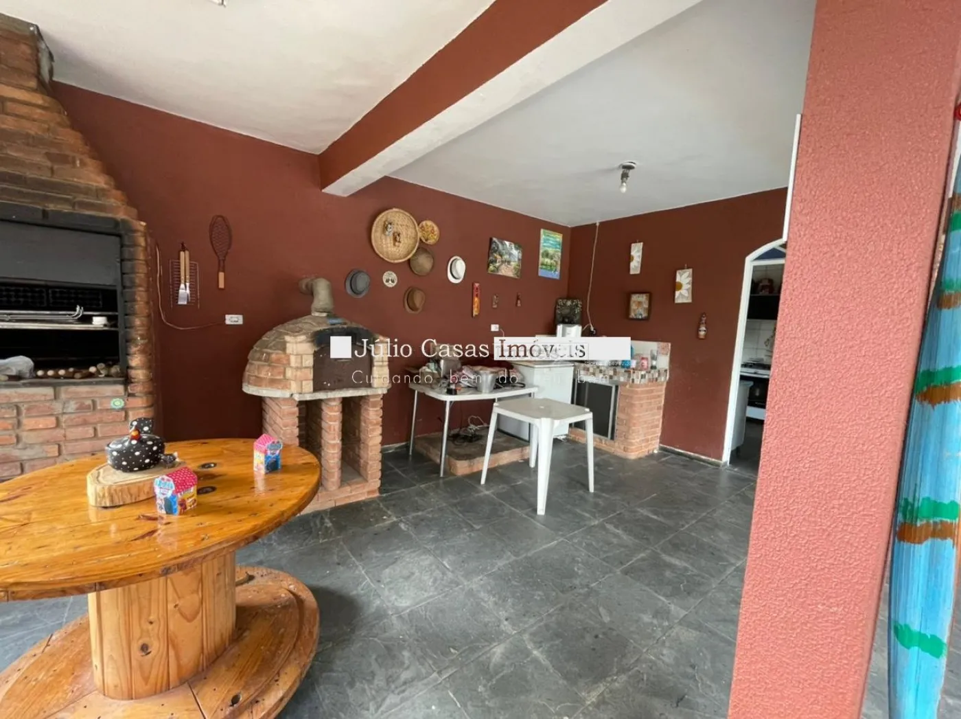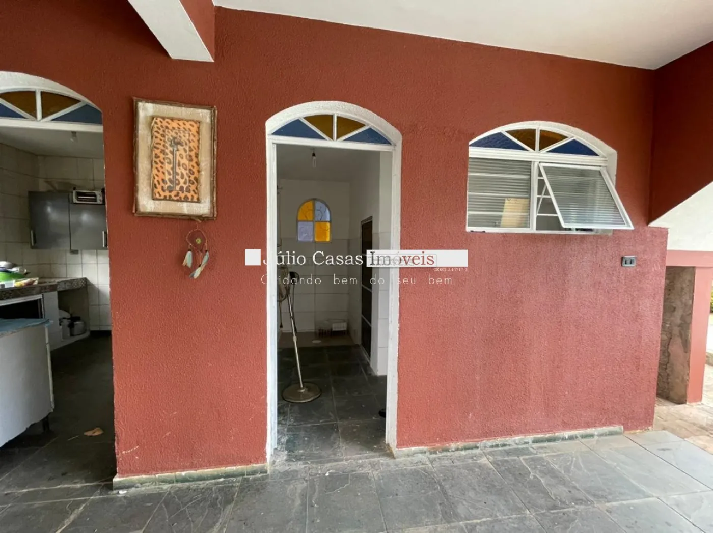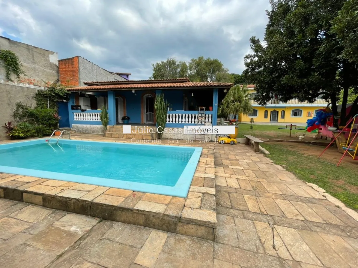 Área gourmet: churrasqueira, forno a Lenha, pia de apoio, cozinha azulejada até o teto, com pia em aço, gabinete e armários, banheiro e uma linda e refrescante piscina.